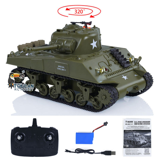 US Warehouse 1/30 Heng Long RC Battle Tank Sherman M4A3 3841-01 2.4G Remote Controlled Tanks Simulation Model DIY