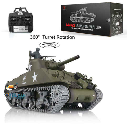 Henglong 1/16 Customized RC Tank Model TK7.0 M4A3 Sherman Remote Control Tank Model 3898 360 Degrees Rotating Turret Metal Road Wheels