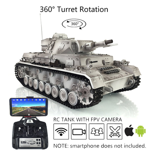Henglong 1/16 RC Tank 3858 Upgraded Panzer IV F TK7.0 RTR Radio Control Tank W/ 360 Degrees Rotating Turret FPV Camera Metal Tracks