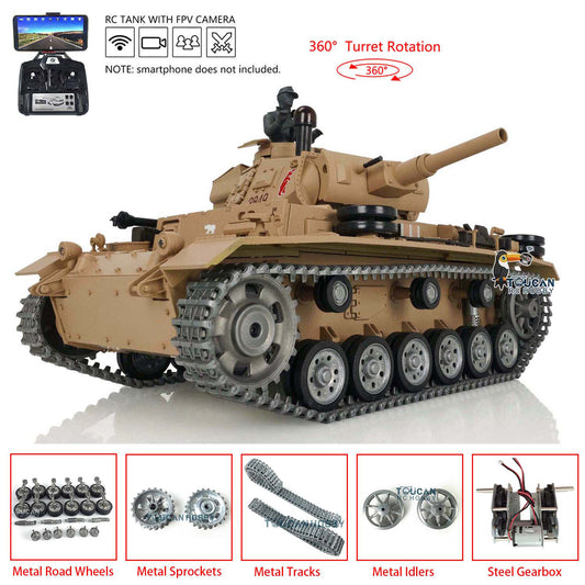 Henglong 1/16 7.0 Main Board Customized Version German Panzer III H RTR RC Tank 3849 With Fist Person View System Metal Tracks Wheels