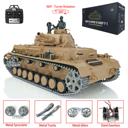 Henglong 1/16 TK7.0 RC Tank 3858 Panzer IV F Radio Control Upgraded Tank W/ 360 Degrees Rotating Turret Metal Tracks Idler Sprocket