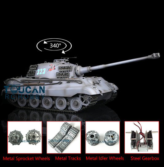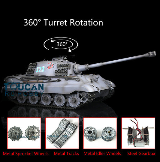 Henglong 1/16 TK7.0 Upgraded King Tiger RC Tank Model 3888A w/ 360 Degrees Rotating Turret Metal Track Idler Sprocket Wheels Smoking