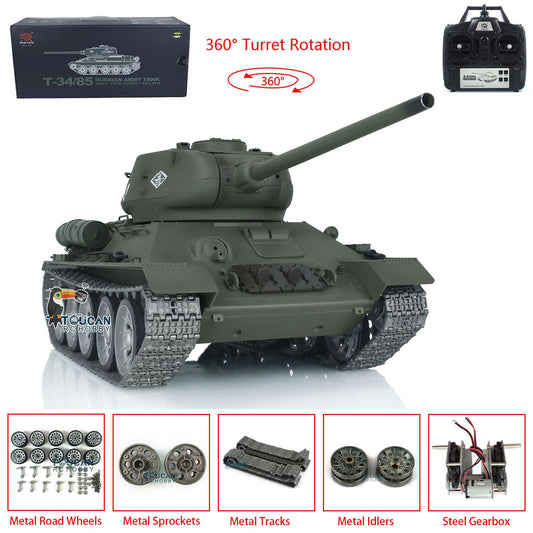 Henglong 1/16 RC Tank 7.0 Upgraded Metal Soviet T34/85 3909 With 360 Degree Turret Telescopic Lifting Barrel Military Vehicle Model