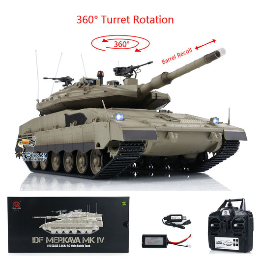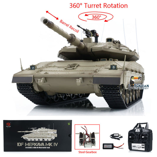 Heng Long 1:16 Military RC Battle Tank IDF Merkava MK IV 3958 With Turret 360 Rotating Barrel Recoil BB Shooting Bullets Model