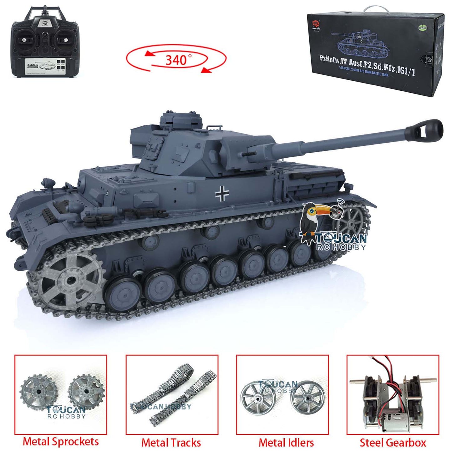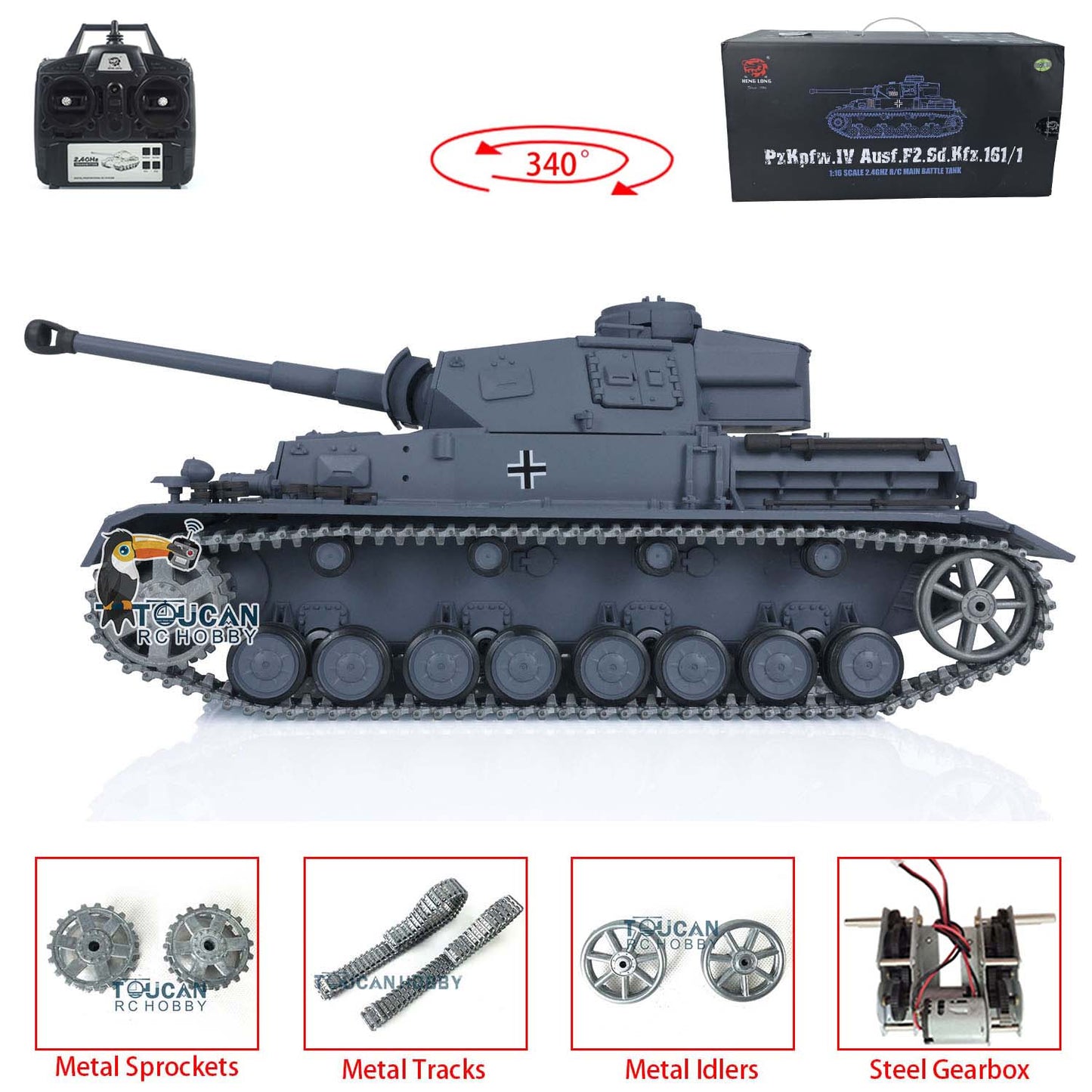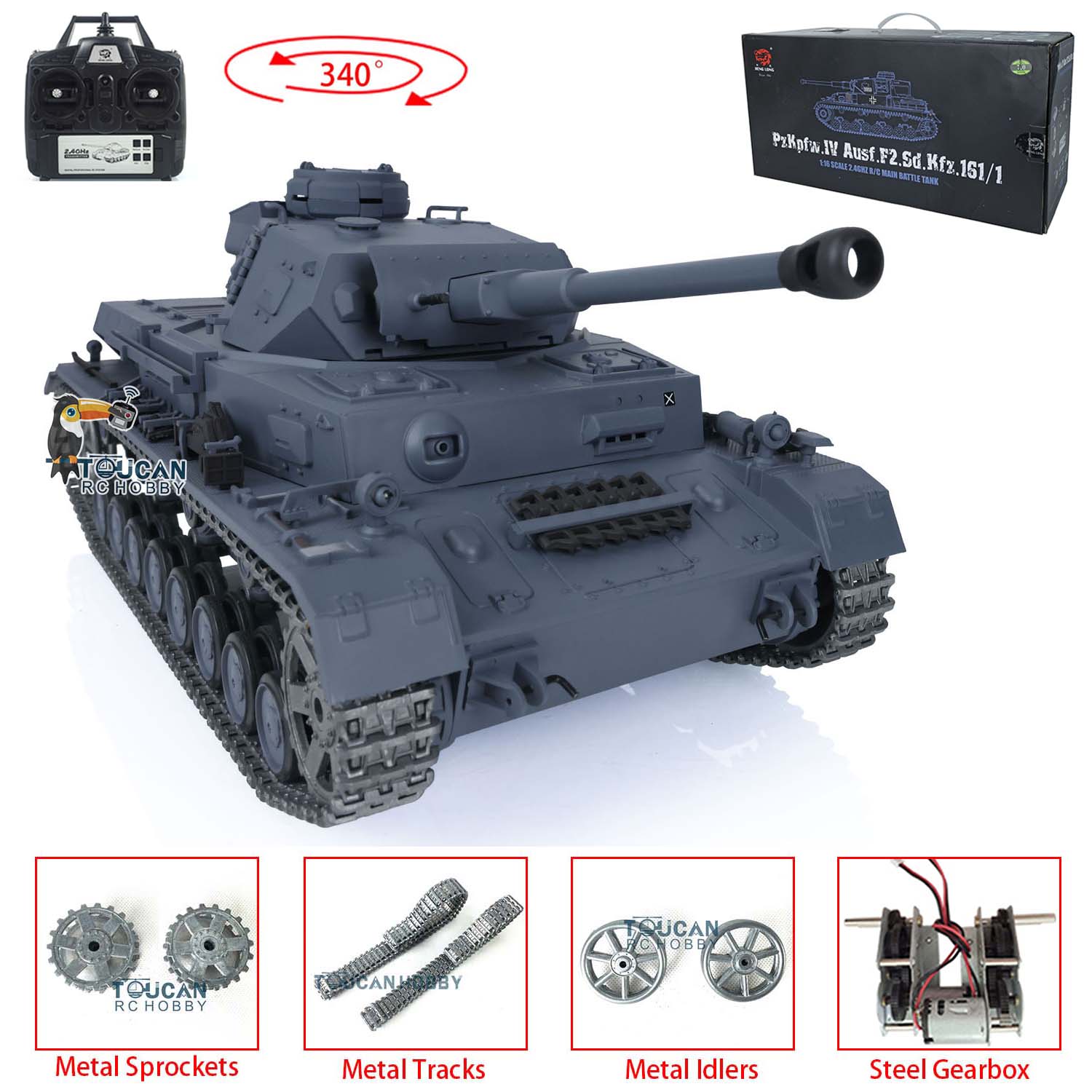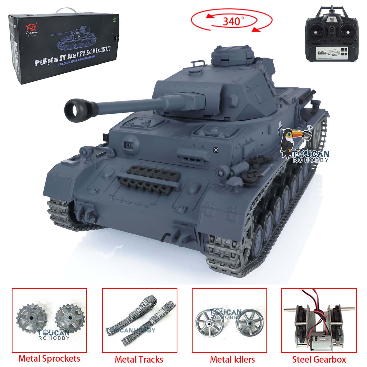 Henglong 1/16 TK7.0 Upgraded German Panzer IV F2 RTR RC Tank 3859 w/ Metal Tracks Idler Sprocket Wheels Smoking Gearbox Sound Effect