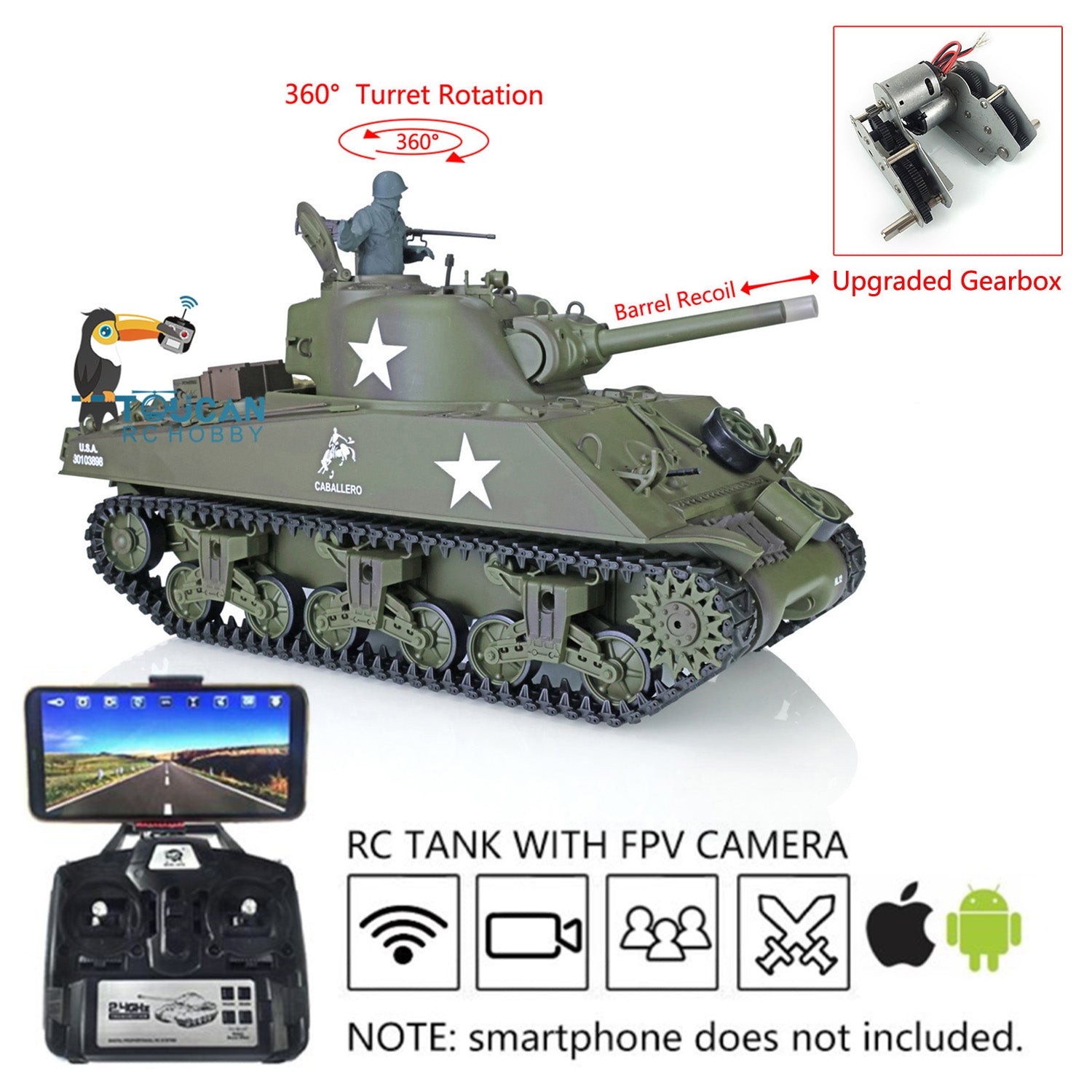Henglong 1/16 TK7.0 Plastic M4A3 Sherman RC Tank Model 3898 w/ 360 Degrees Rotating Turret FPV Barrel Recoil Smoking Gift for Boys