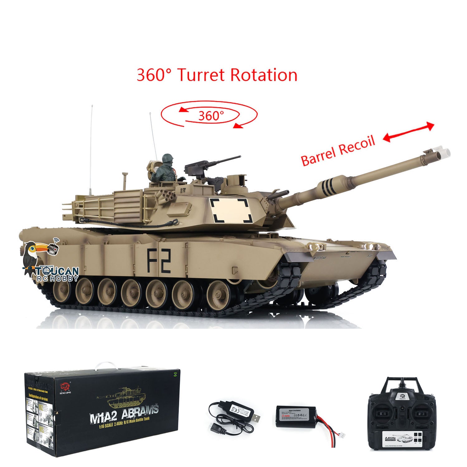 Henglong 1:16 7.0 USA M1A2 Abrams RC Battle Tank 3918 RTR Model 360 Degrees Turret Barrel Recoil Plastic Upper Hull Tracks Wheels