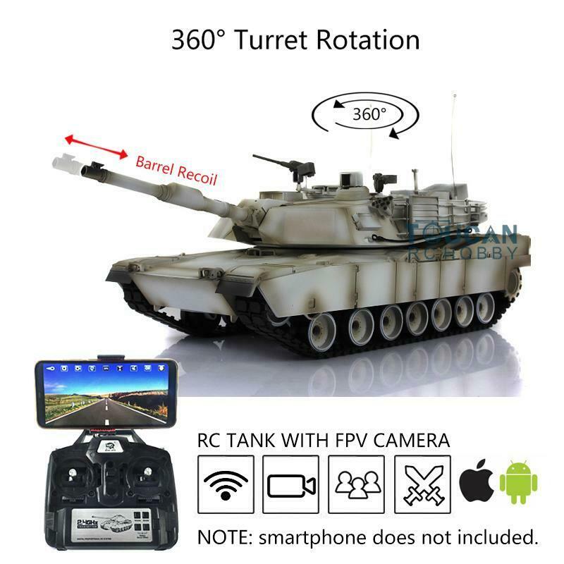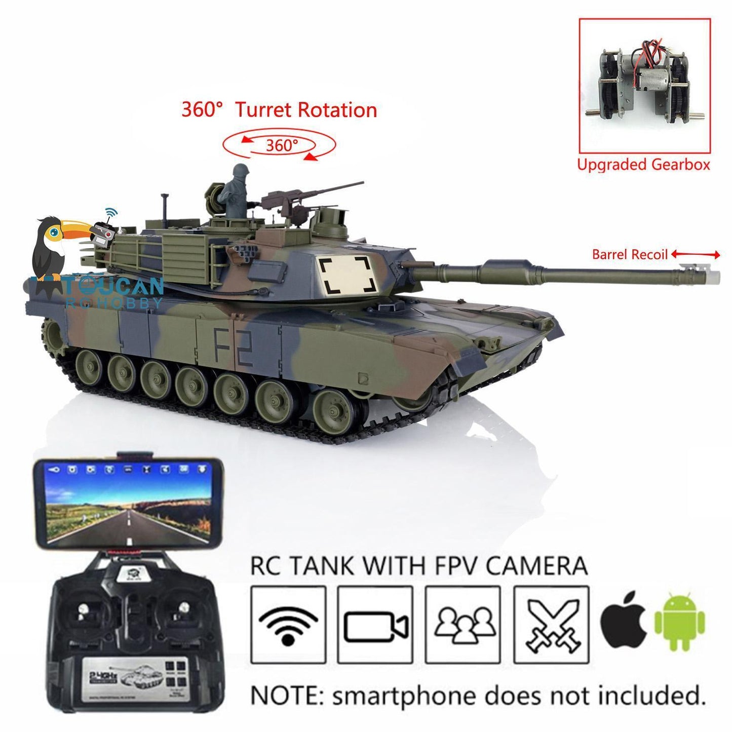 Henglong 1/16 7.0 USA M1A2 Abrams RTR RC Tank Model 3918 Barrel Recoil 360 Degrees Turret Steel Gearbox First Person View