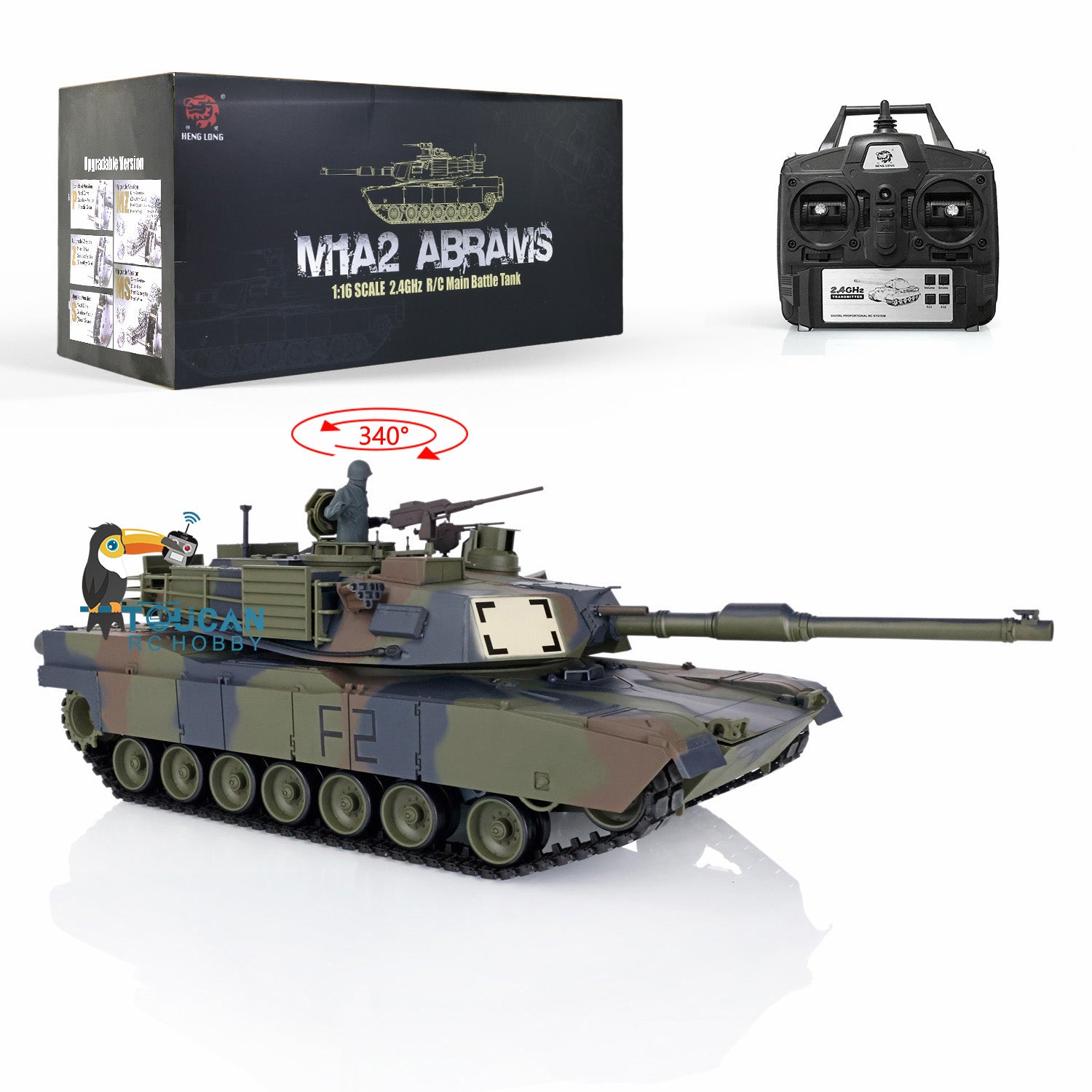 Henglong 1:16 Scale 2.4Ghz 7.0 USA M1A2 Abrams RTR RC Tank 3918 Model 340 Turret 1800MAH Battery Charger For Collections