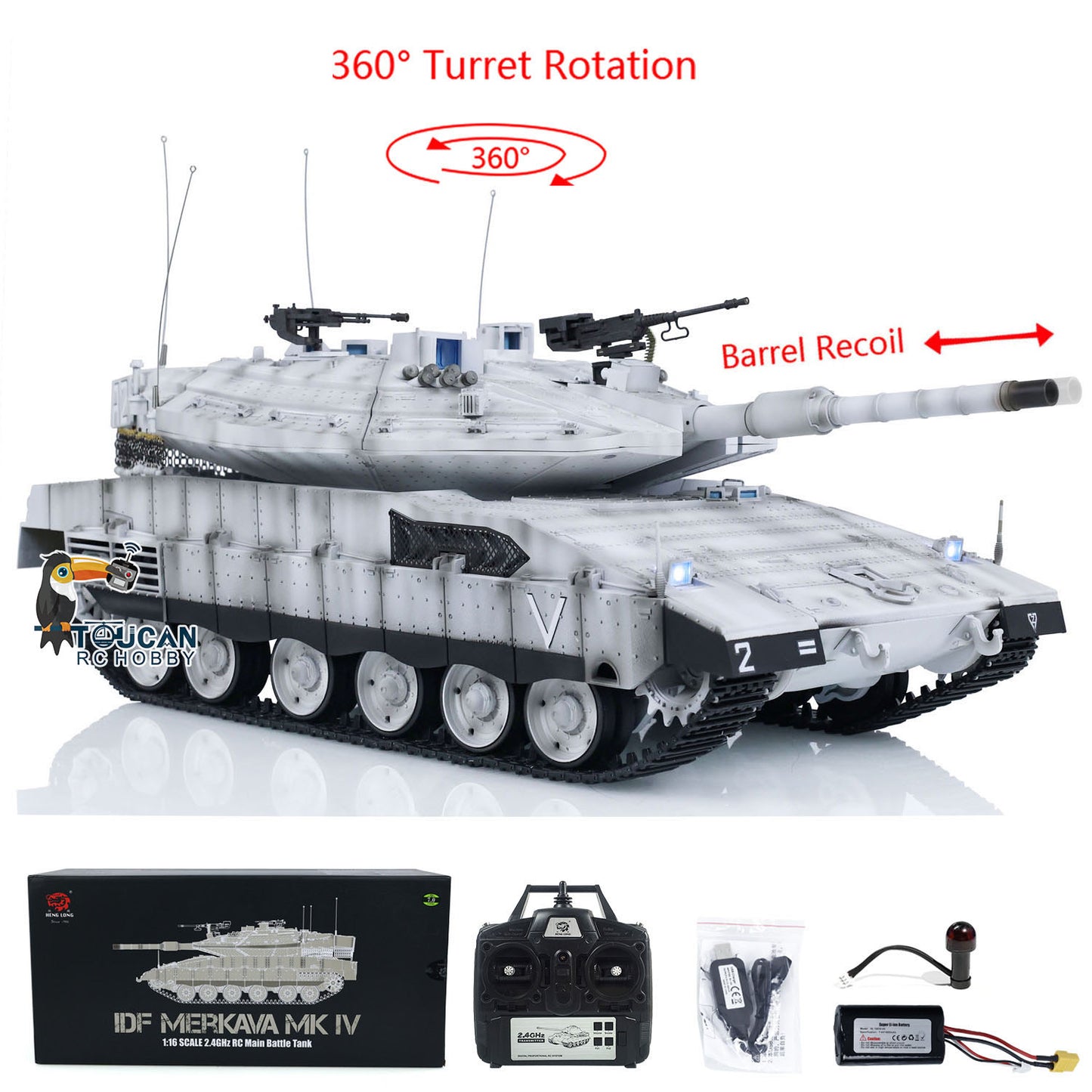 Heng Long 1:16 Military RC Battle Tank IDF Merkava MK IV 3958 With Turret 360 Rotating Barrel Recoil BB Shooting Bullets Model