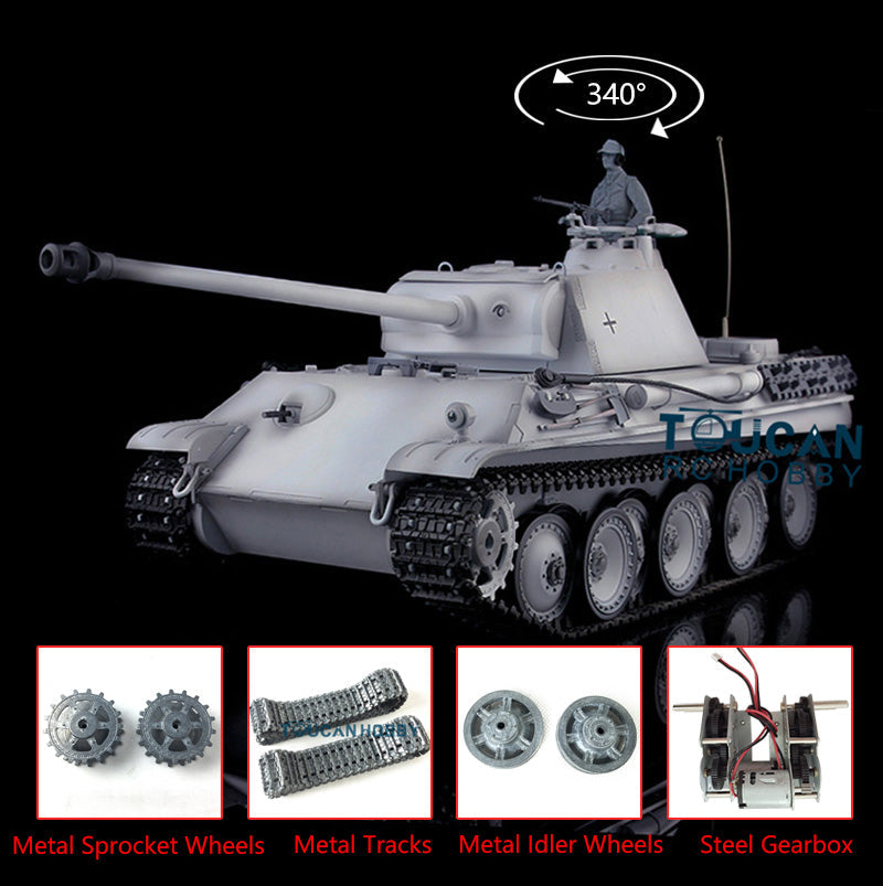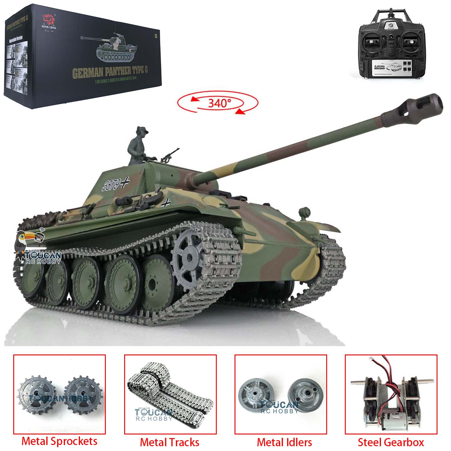 Henglong 1/16 Radio Control Tank 3879 Upgraded German Panther G TK7.0 RTR RC Tank w/ Metal Tracks Idler Sprocket Wheels Smoking