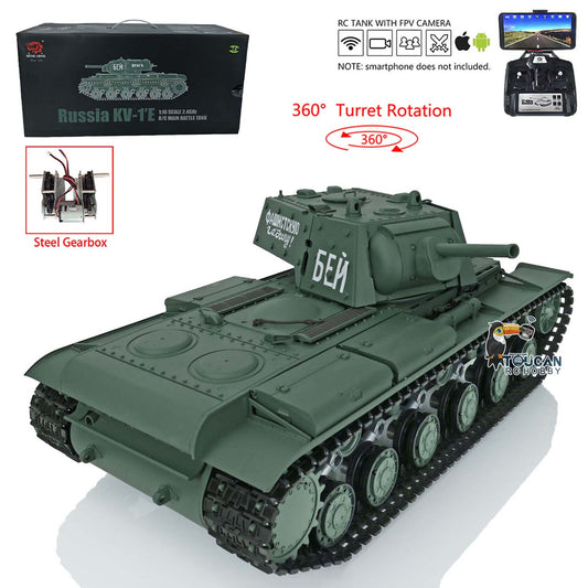 Henglong RC Tank Model 1/16 TK7.0 Plastic 3878 Soviet Union KV-1 w/ FPV 360 Degrees Rotating Turret BB Shooting Sound Effect 2.4Ghz