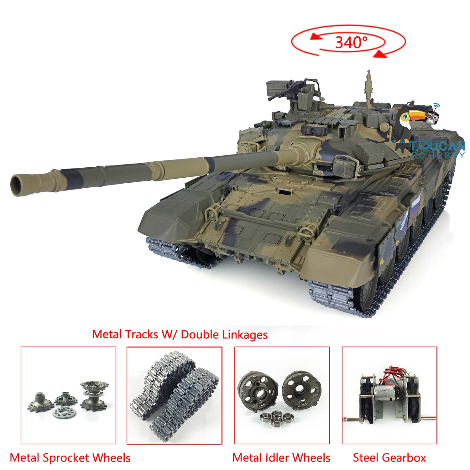 2.4G Henglong 1/16 Scale 7.0 Upgraded Russia T90 RTR RC Tank 3938 Metal Sprocket Wheels Tracks Infrared Combating System