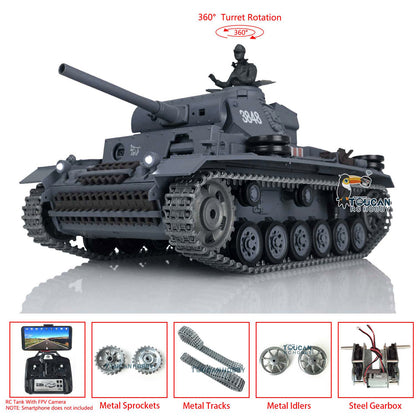 Henglong 1/16 RC Tank Upgraded German Tank 3848 TK7.0 Panzer III L Radio Control Tank w/ 360 Degrees Rotating Turret FPV 2 Sounds