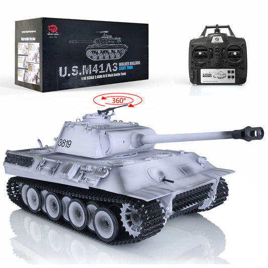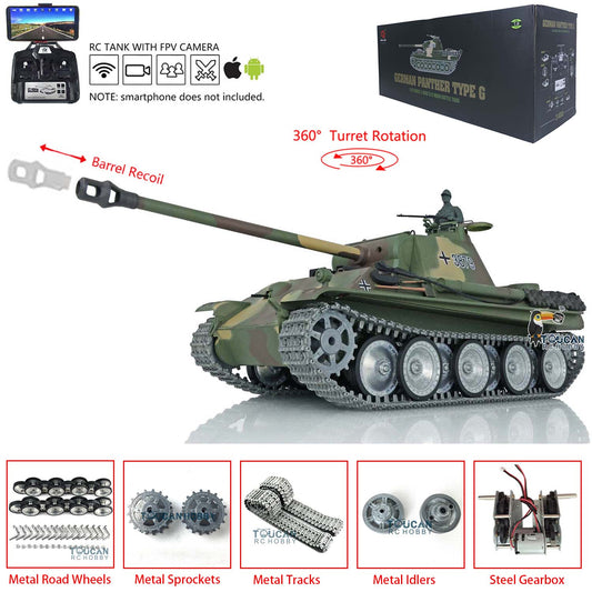 Henglong 1/16 TK7.0 RC Tank Model Panther 3819 w/ FPV 360 Degrees Rotating Turret Metal Tracks Road Wheels Engine Sound Smoking