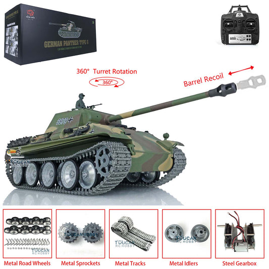 Henglong 1/16 RC Tank TK7.0 3879 Customized German Tank Panther G RTR Tank w/ 360 Degrees Rotating Turret Metal Road Wheel