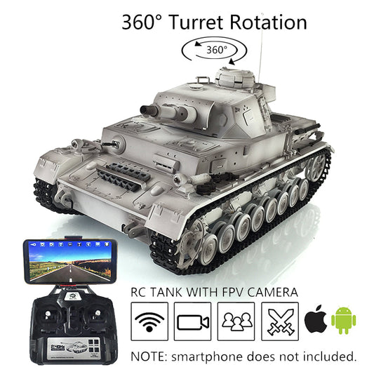 Henglong TK7.0 1/16 Customized RC Tank 3858 Panzer IV F RTR RC Tank w/ 360 Degrees Rotate Turret FPV Camera Metal Road Wheels Tracks