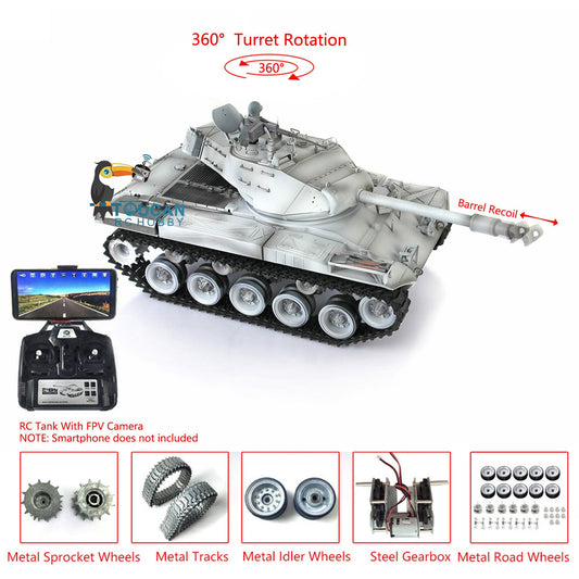 Henglong 1/16 TK7.0 Customized RC Tank USA Walker Bulldog 3839 360 Degrees Rotating Turret Metal Idler Sprocket Road Wheels FPV