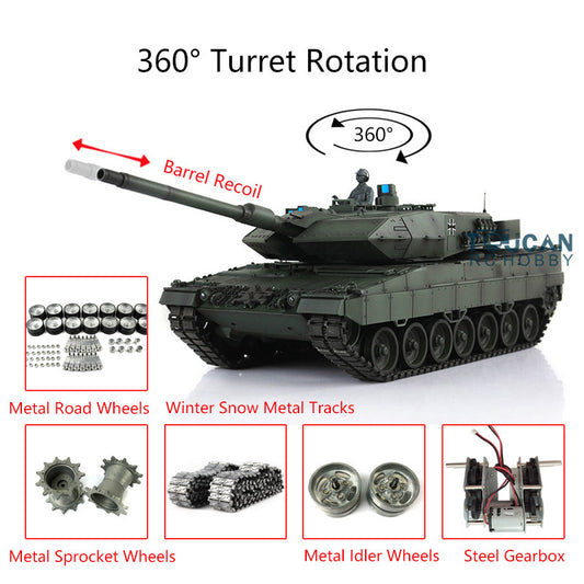 Henglong Military Tank Model 1/16 TK7.0 Leopard2A6 RC Tank Model Upgraded 3889 360 Rotating Turret Metal Tracks W/ Rubber Pad