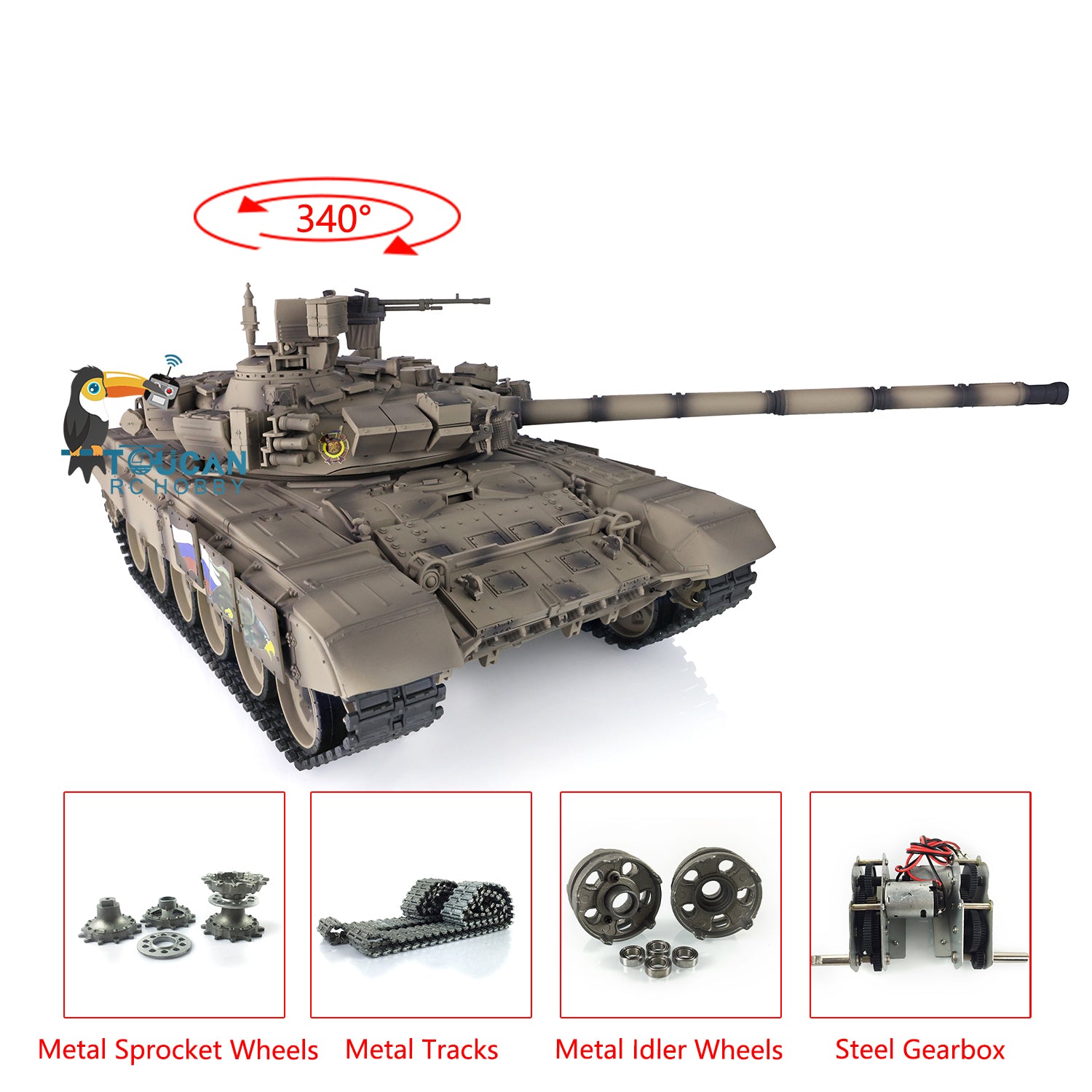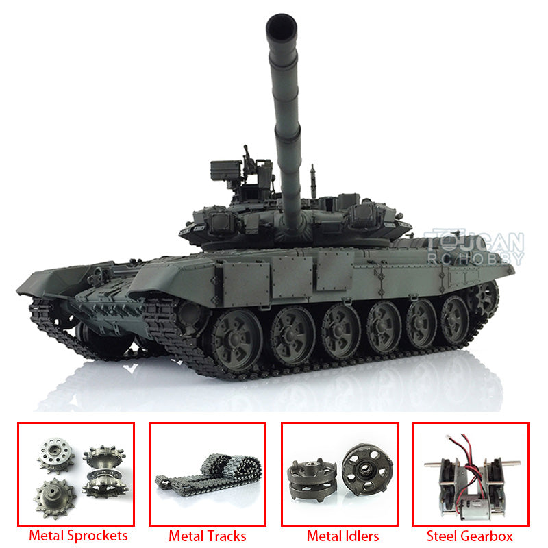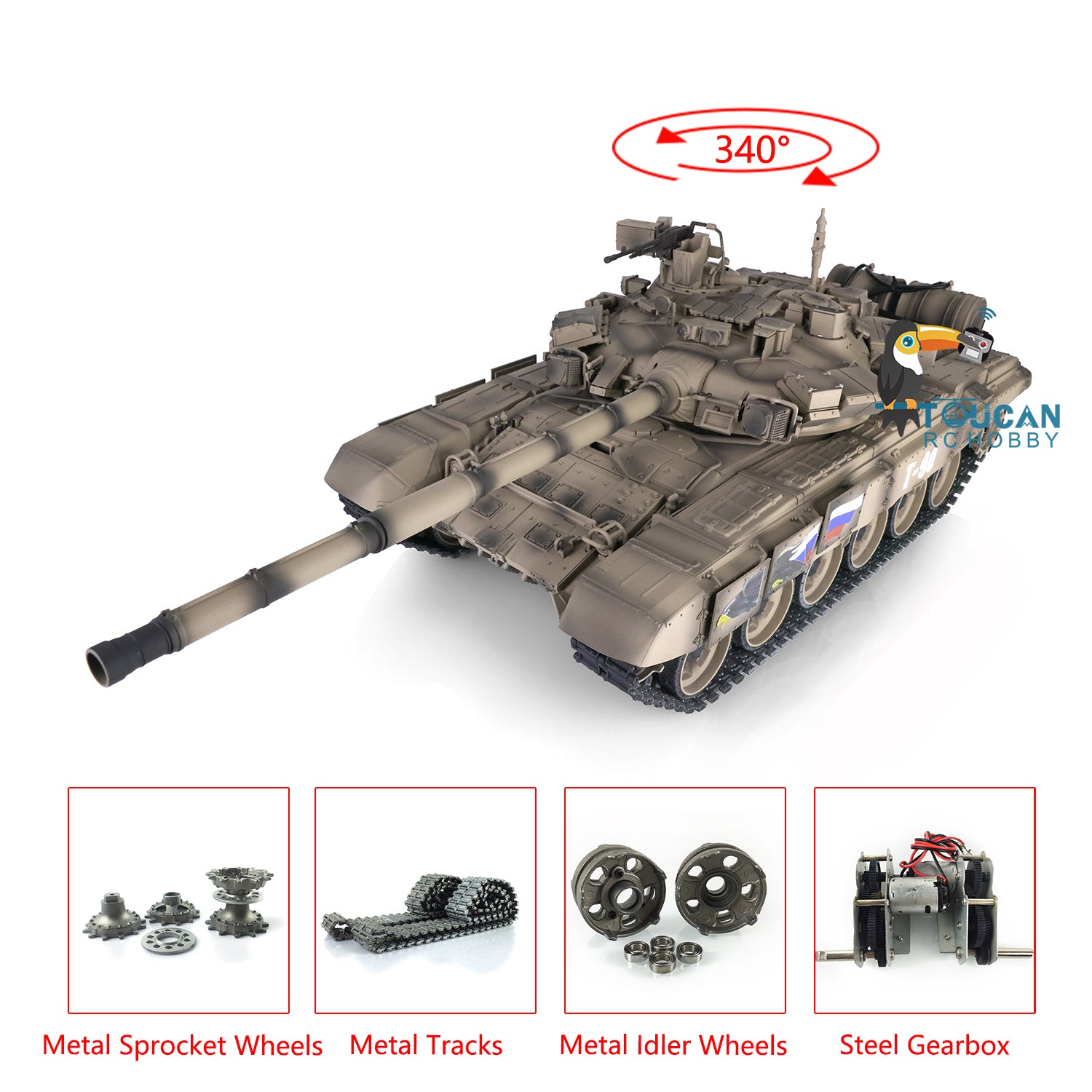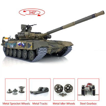 2.4Ghz Henglong Main Battle Russian T90 1/16 Scale 7.0 RTR RC Tank Model 3938 340 Turret Metal Tracks Idlers Driving Wheels