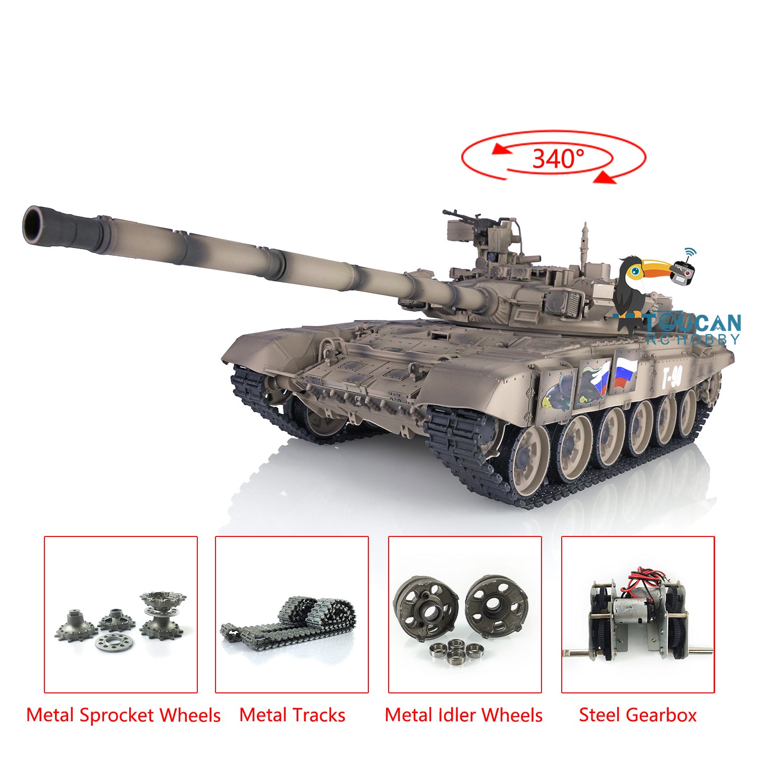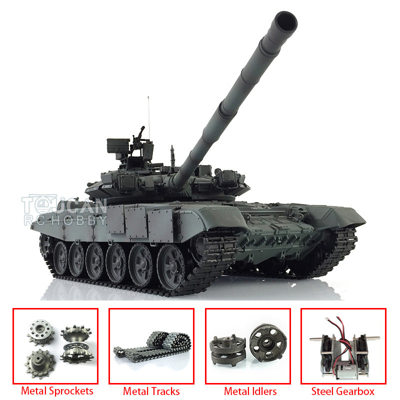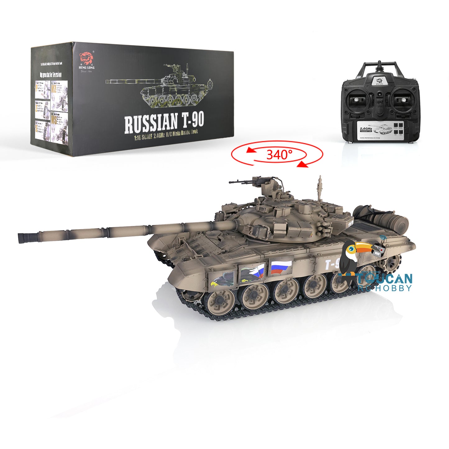 2.4Ghz Henglong Main Battle Russian T90 1/16 Scale 7.0 RTR RC Tank Model 3938 340 Turret Metal Tracks Idlers Driving Wheels
