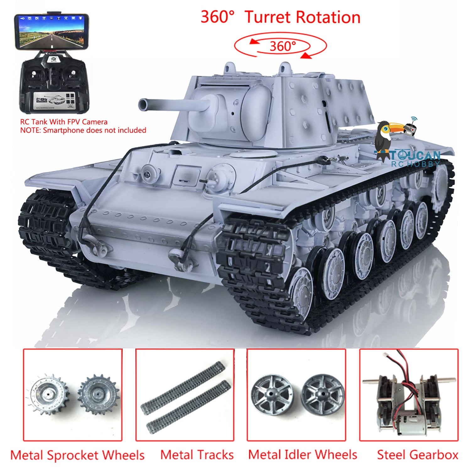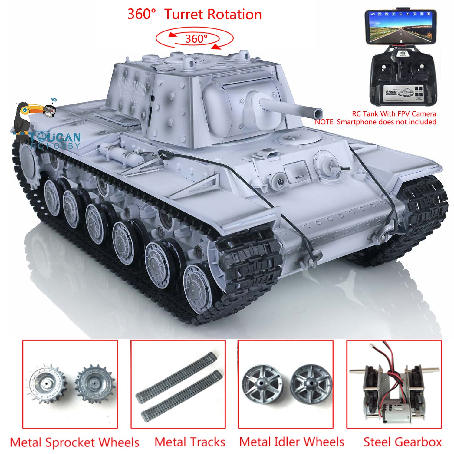 Henglong 1/16 TK7.0 3878 Upgraded Remote Control Tank RTR RC Tank w/ FPV Smoking 360 Degrees Rotating Turret Metal Idler Sprocket