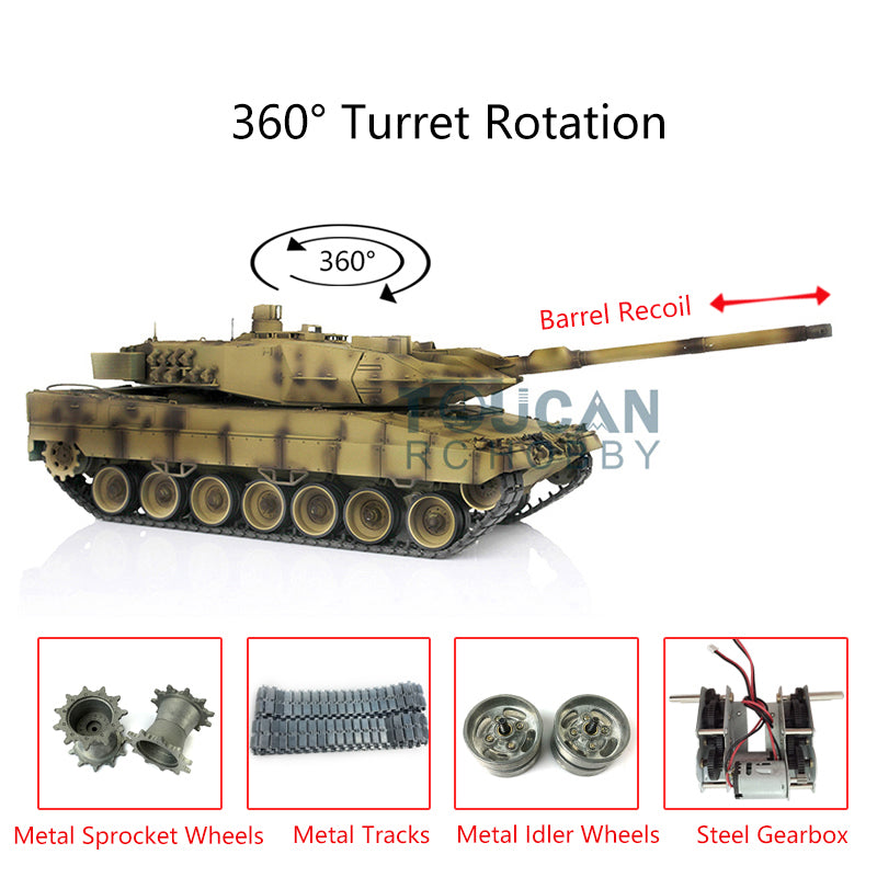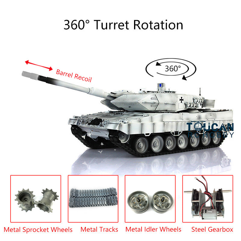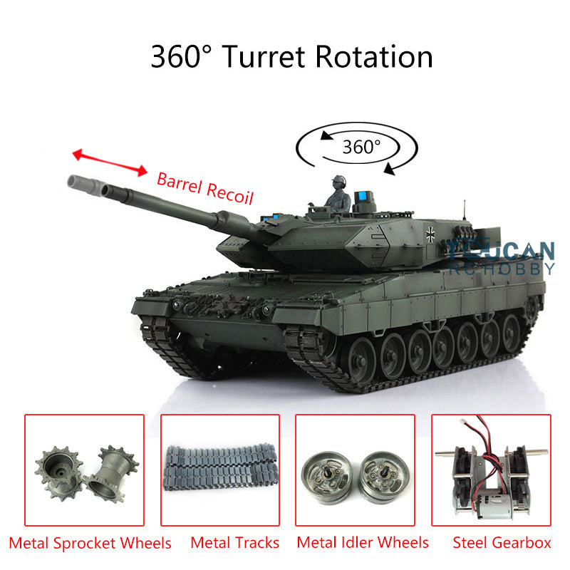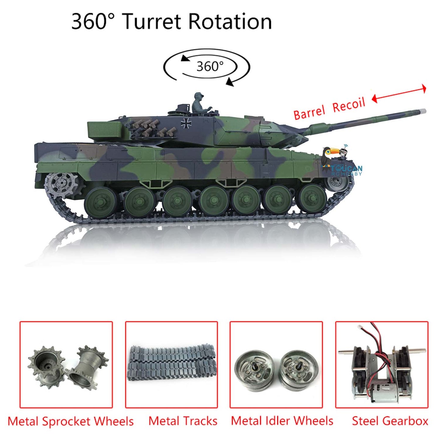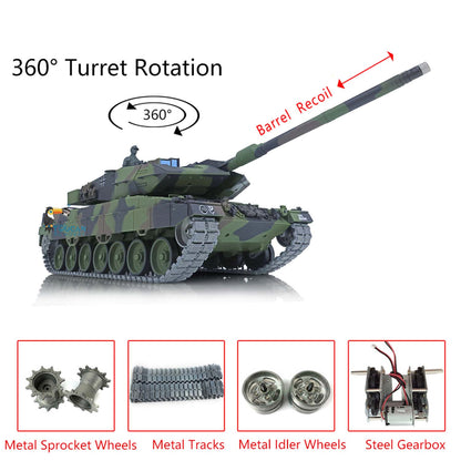 Henglong 1/16 TK7.0 Edition Upgraded Leopard2A6 RC Tank Model 3889 W/ 360 Degrees Rotating Turret Metal Driving Gearbox Tracks
