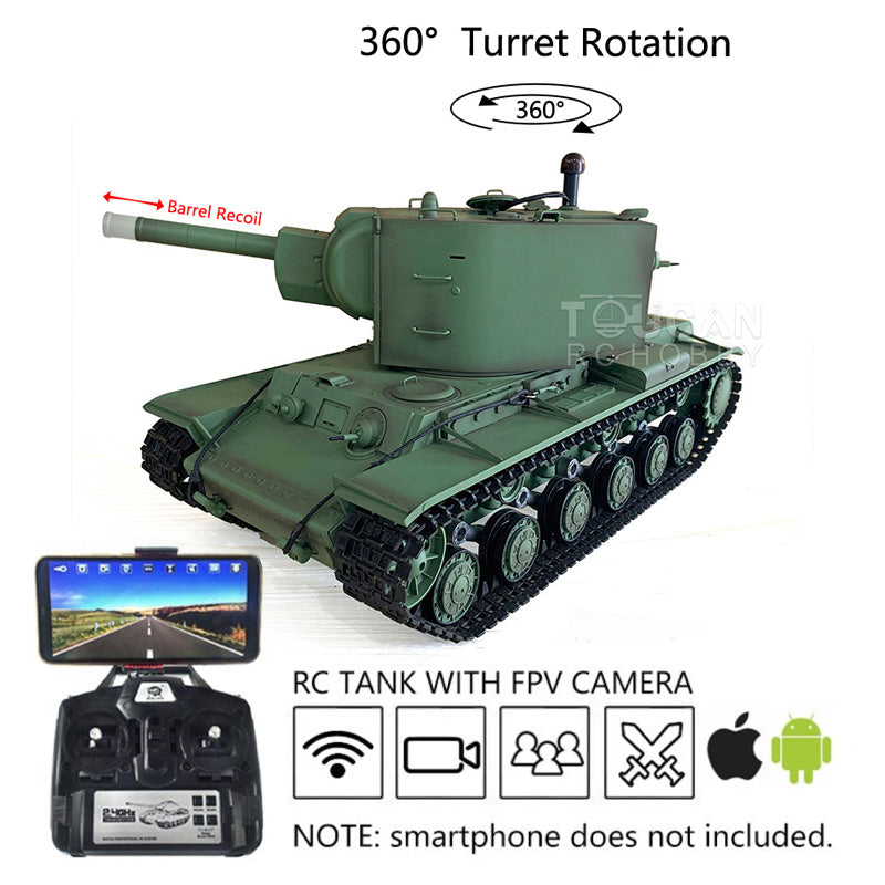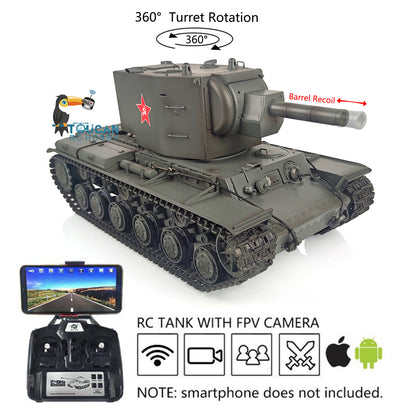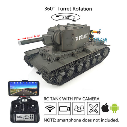 Henglong 1/16 Soviet KV-2 RTR RC Tank Model Gigant TK7.0 FPV 3949 360 Degrees Turret Steel Driving Gearbox Battery Transmitter