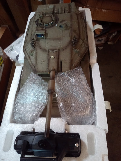 Item Condition: According to a previous customer, there are unknown pieces of plastic in the package, the charger won't charge, and the tank is missing 2 of the drive wheel caps and the road wheels don't fit.