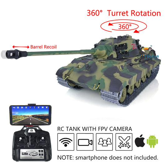 Henglong 1/16 Radio Control Tank TK7.0 King Tiger RC Tank 3888A w/ FPV 360 Degrees Rotating Turret Metal Road Wheels Smoking
