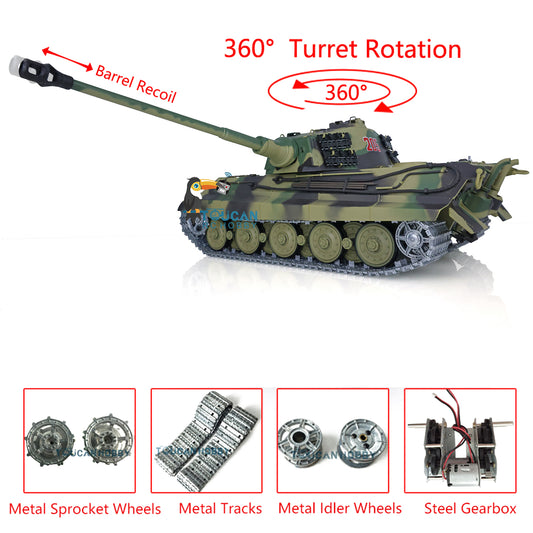 Henglong 1/16 TK7.0 Upgraded King Tiger RC Tank Model 3888A w/ 360 Degrees Rotating Turret Metal Track Idler Sprocket Wheels Smoking
