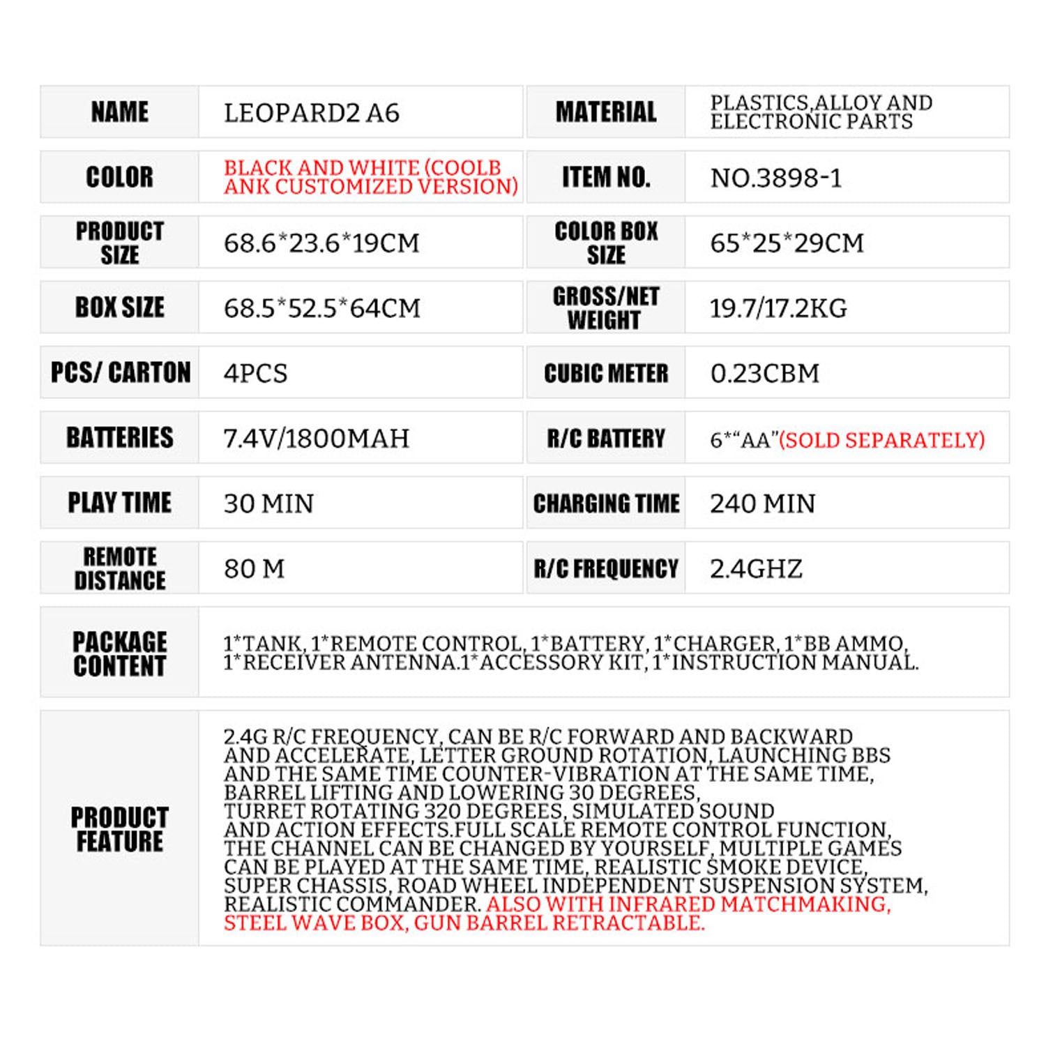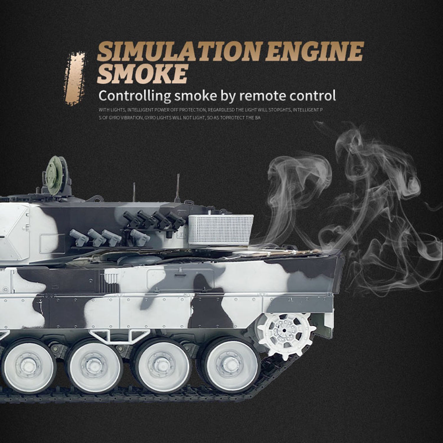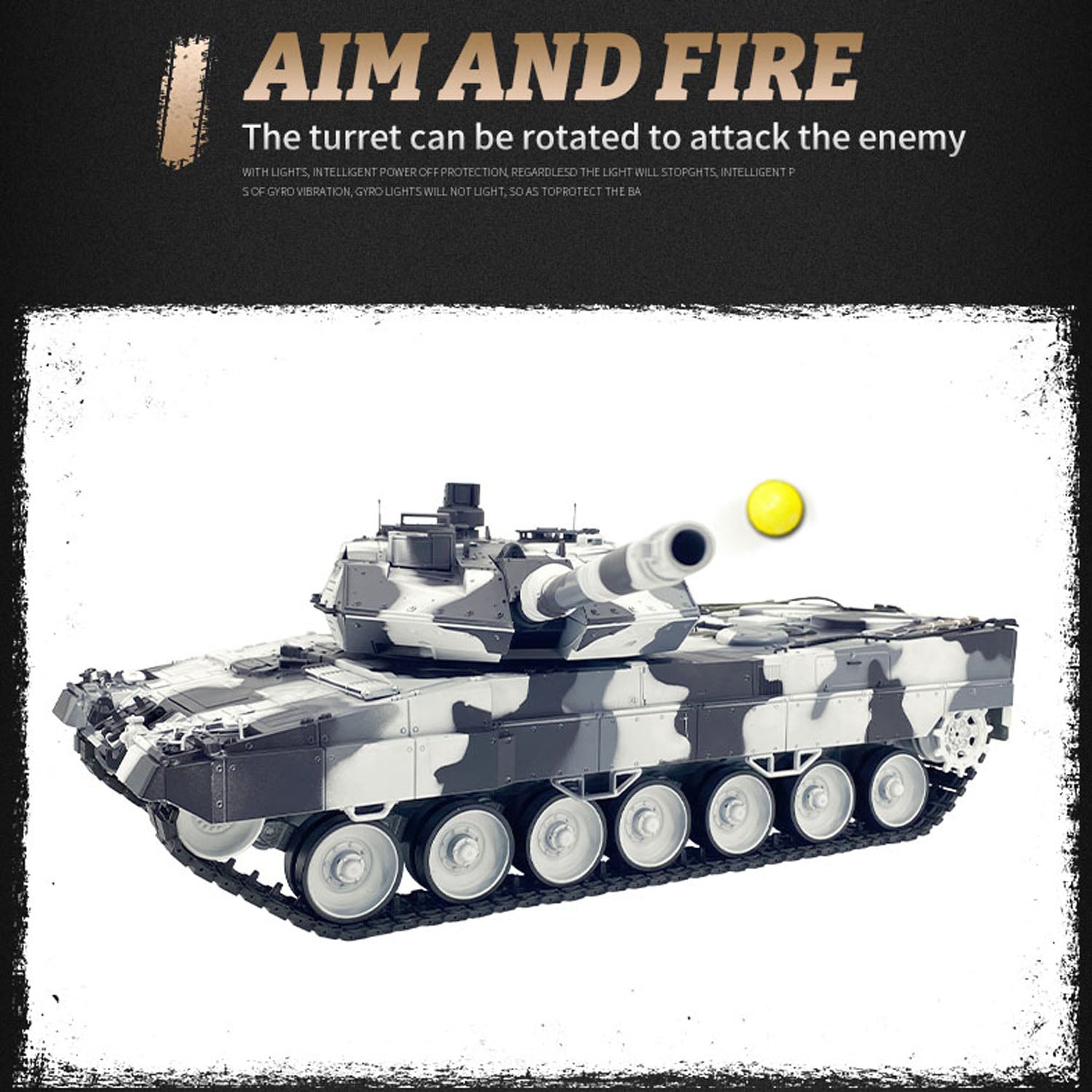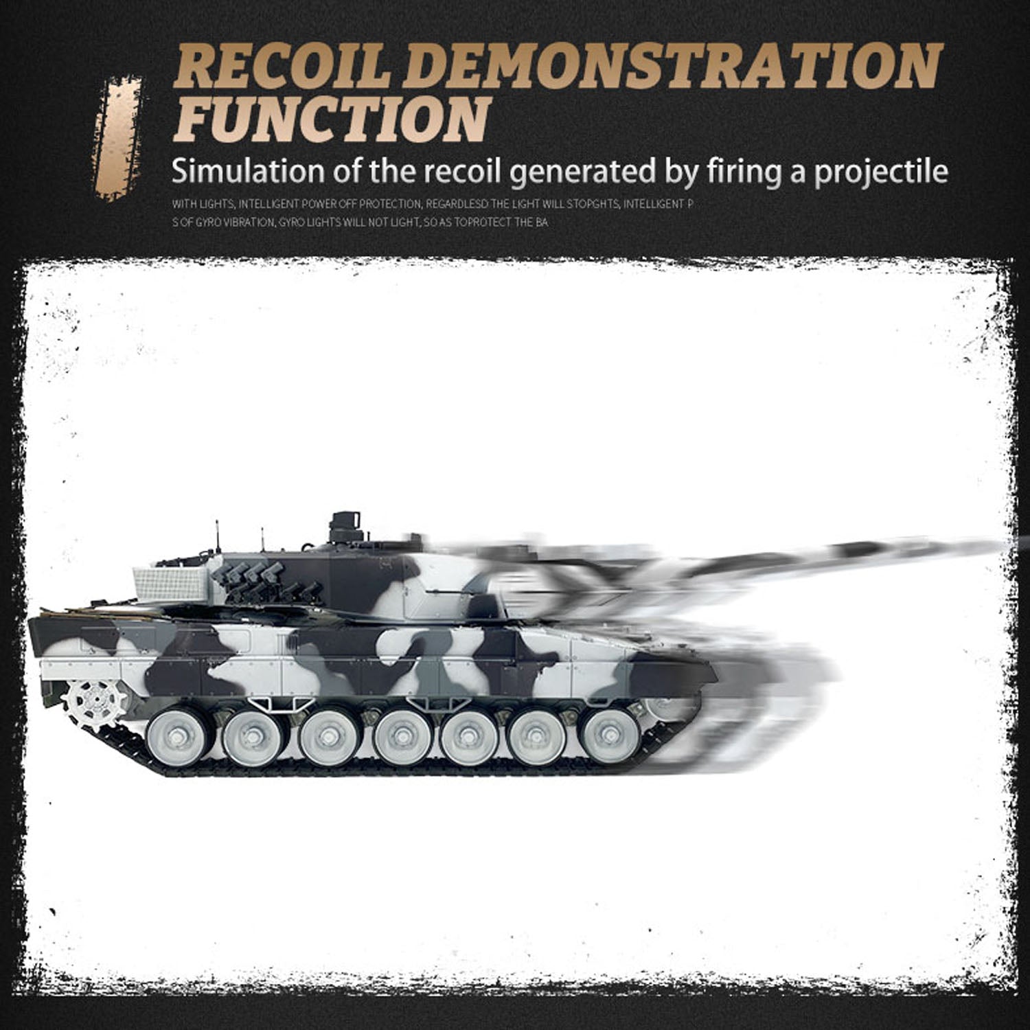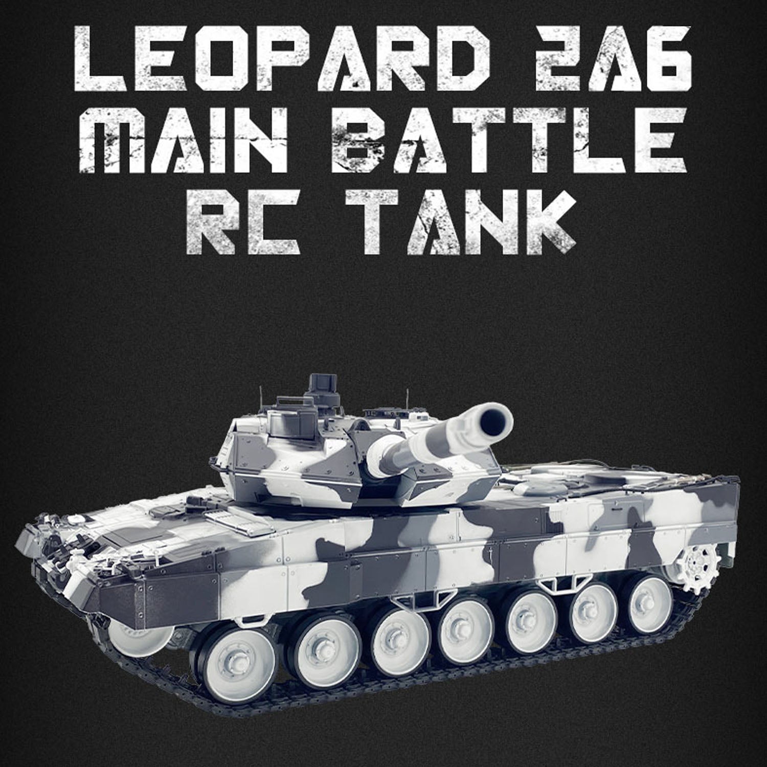 2.4G Henglong 1/16 7.0 Leopard2A6 RC Tank 3889 Metal Gearbox Suspension Bars BB IR Barrel Recoil Sound Smoking Light Battery
