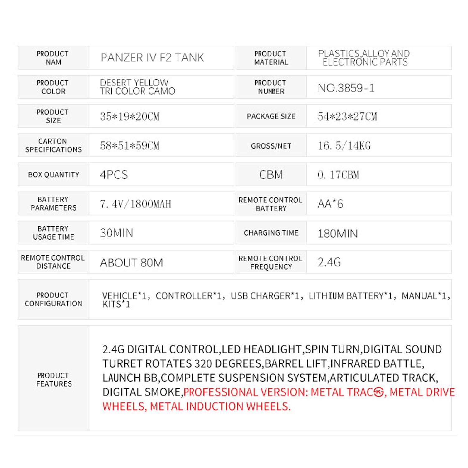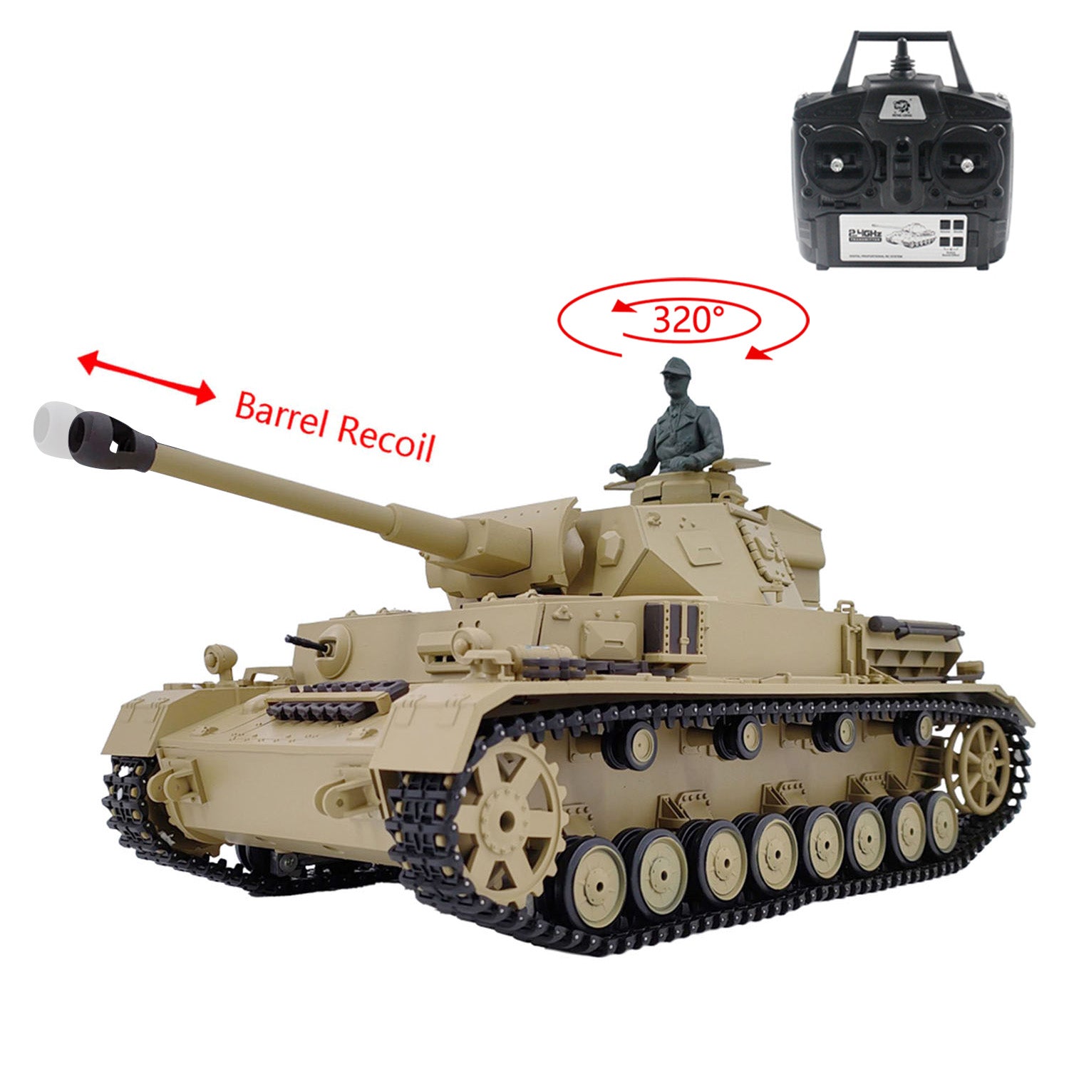 Henglong 3859 1/16 7.0 Plastic German Panzer IV F2 RTR RC Tank Model BB Infrared Combat System Steel Gearbox 1800mah Battery