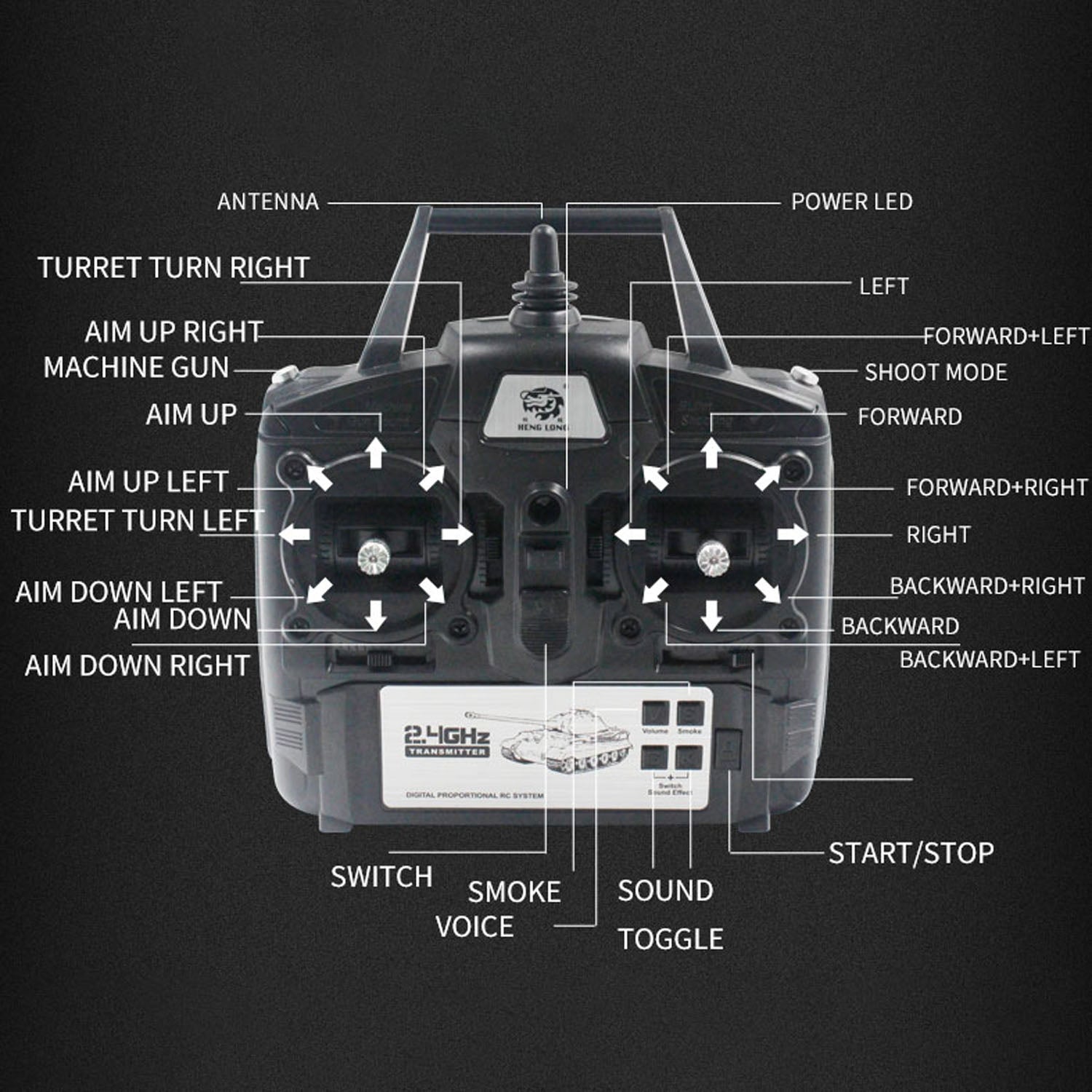 10.2.4GHz radio control system prevents signal interference, allowing multiple tanks to battle simultaneously.