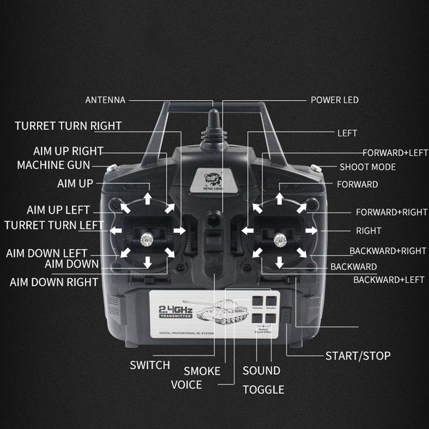 10.2.4GHz radio control system prevents signal interference, allowing multiple tanks to battle simultaneously.