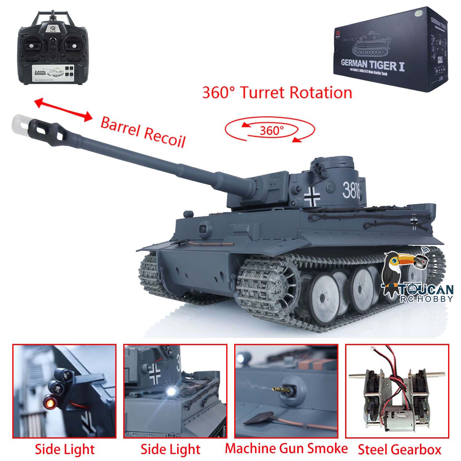 Henglong 1/16 Metal 7.0 RC Tank RTR 3818 German Tiger I W/ Barrel Recoil Track Wheel Somiking Machine Gun Side Light Barrel Recoil