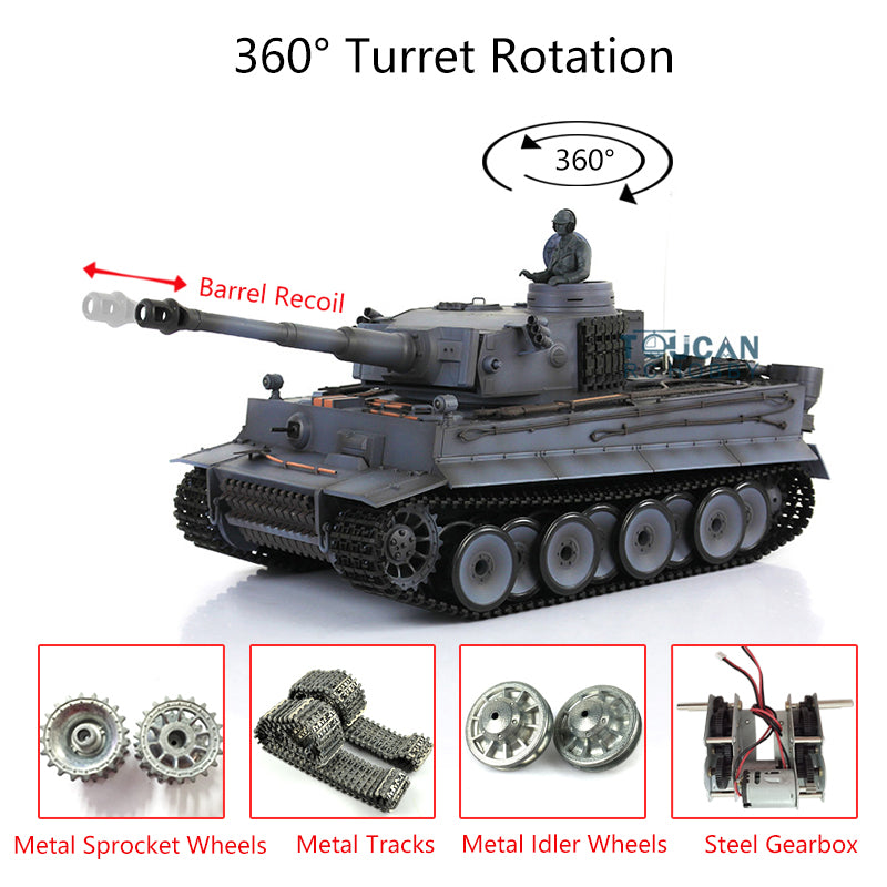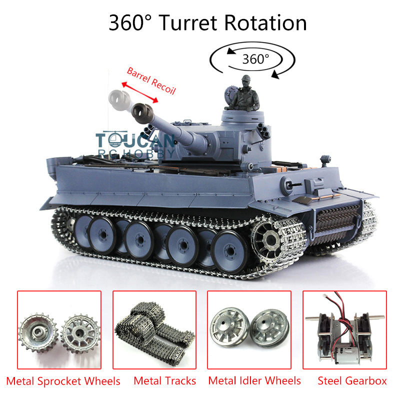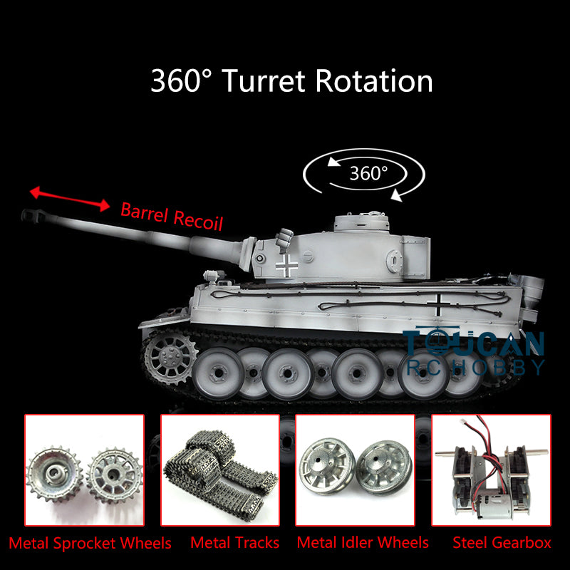 Henglong 1/16 TK7.0 Upgraded German Tank 3818 Radio Control Tiger I RC Tank W/ 360 Degrees Turret Metal Idler Sprocket Tracks