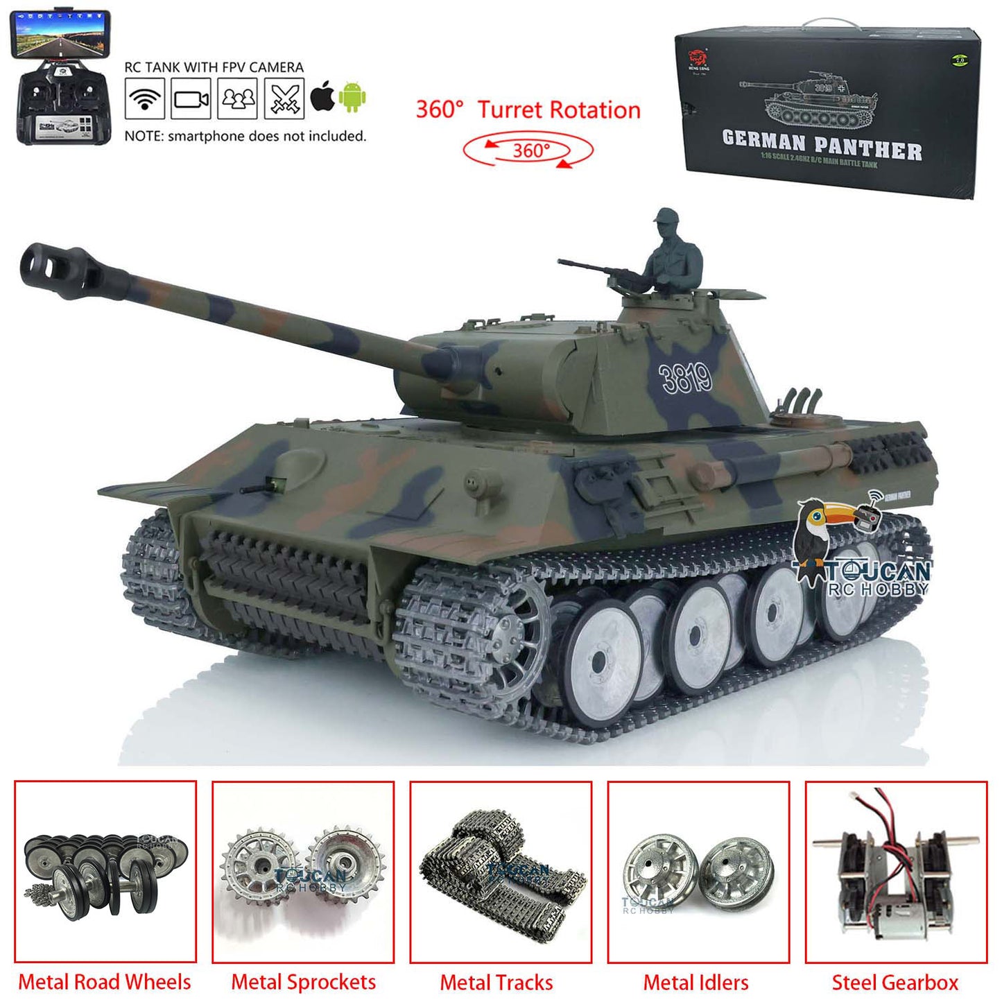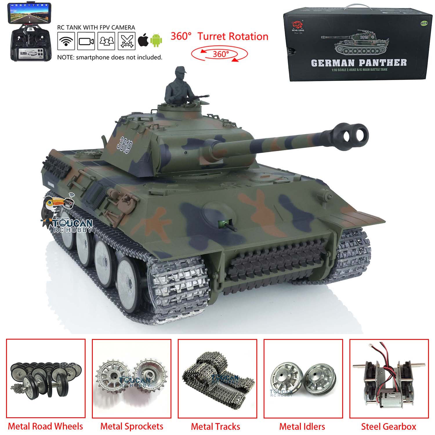 Henglong 1/16 TK7.0 RC Tank Model Panther 3819 w/ FPV 360 Degrees Rotating Turret Metal Tracks Road Wheels Engine Sound Smoking