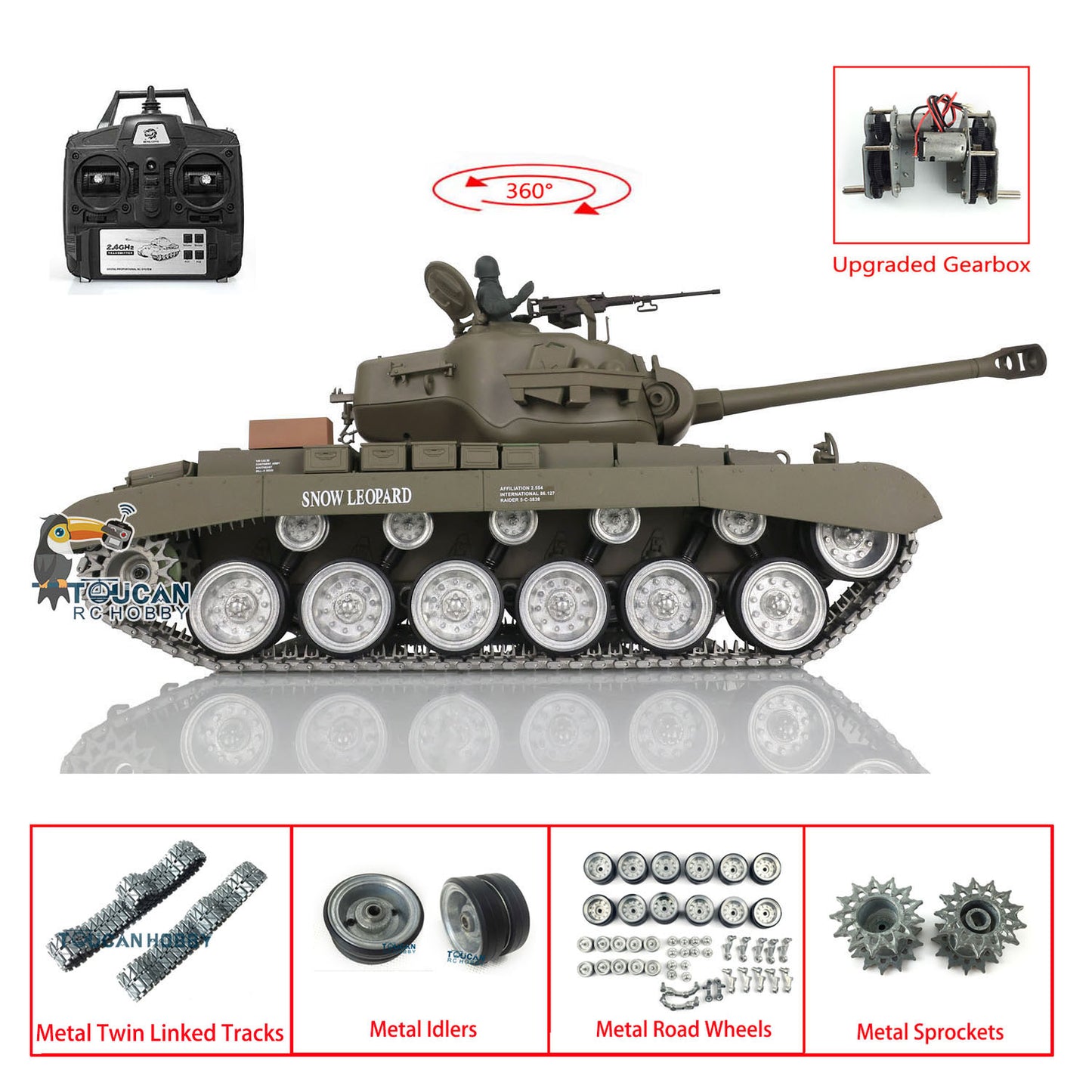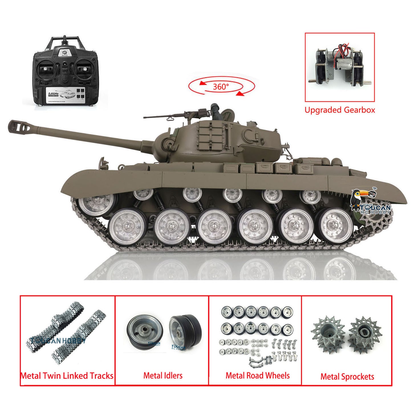 Henglong 1/16 TK7.0 M26 RTR RC Tank 3838 w/ Metal Tracks w/ Double Rubber Pad 360 Degrees Rotating Turret Metal Sprocket Road Wheels