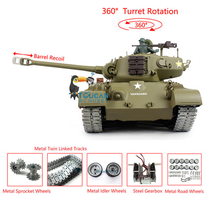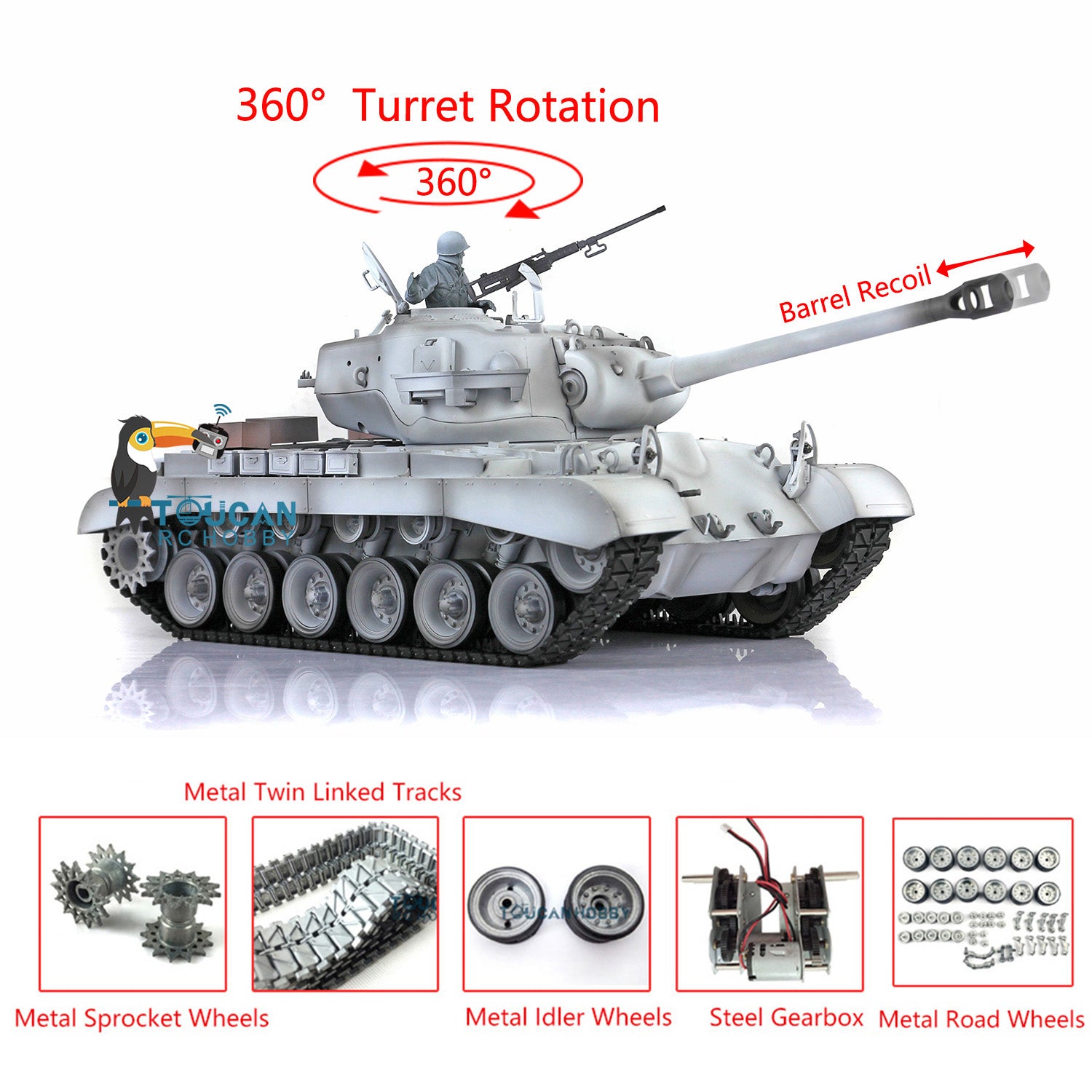 Henglong 1/16 TK7.0 M26 Pershing RC Tank Model 3838 w/ 360 Degrees Rotating Turret Metal Road Wheels Tracks w/ Double Rubber Pad