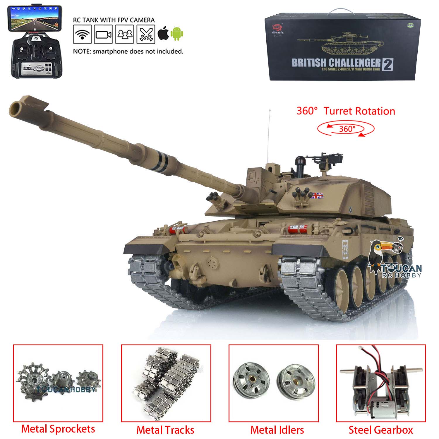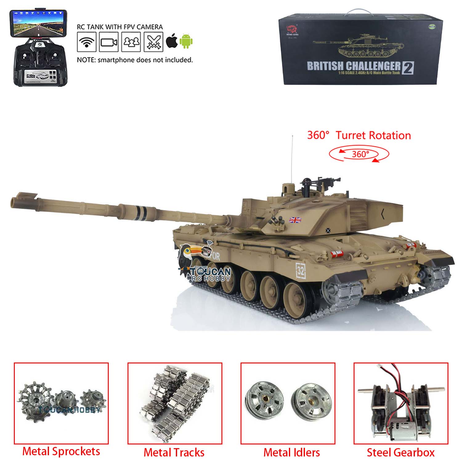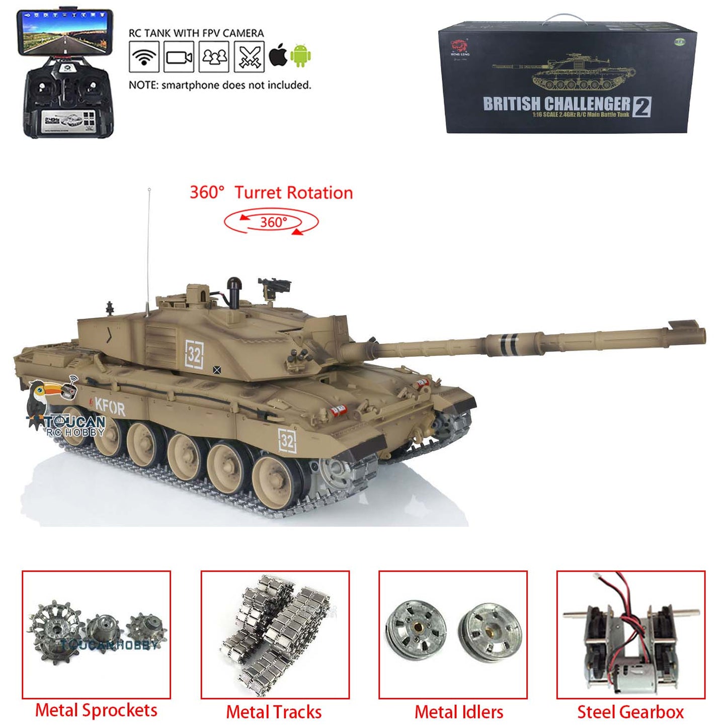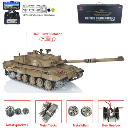 Henglong 7.0 1/16 2.4Ghz Upgrade Edition FPV British Challenger II RTR RC Tank 3908 360 Degrees Turret Chassis Upper Hull Metal Tracks