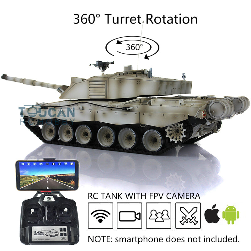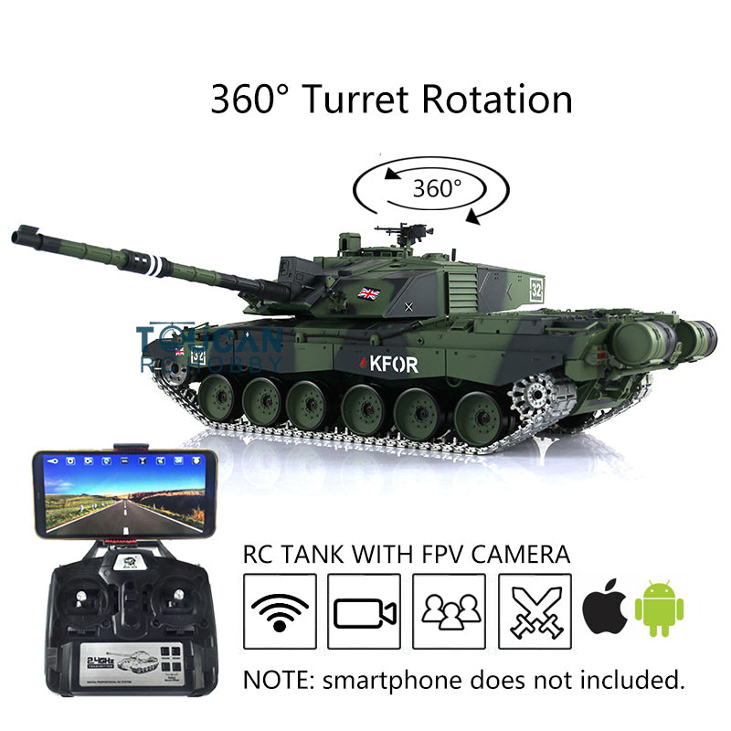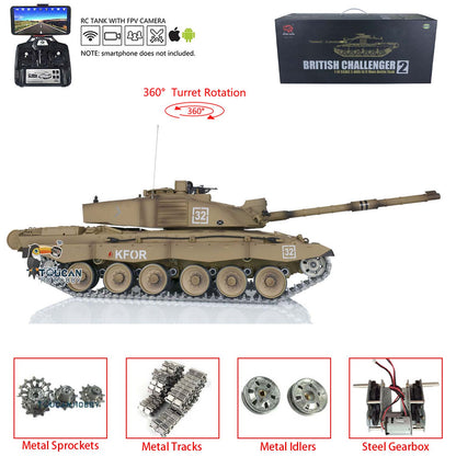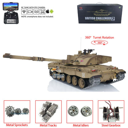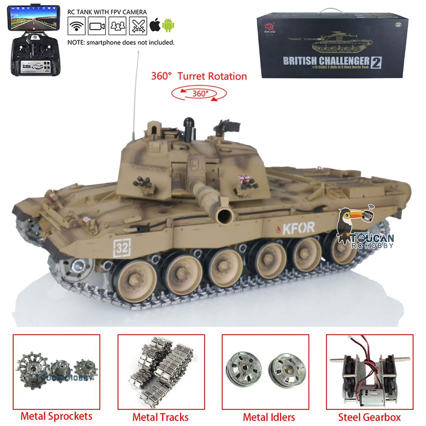 Henglong 7.0 1/16 2.4Ghz Upgrade Edition FPV British Challenger II RTR RC Tank 3908 360 Degrees Turret Chassis Upper Hull Metal Tracks