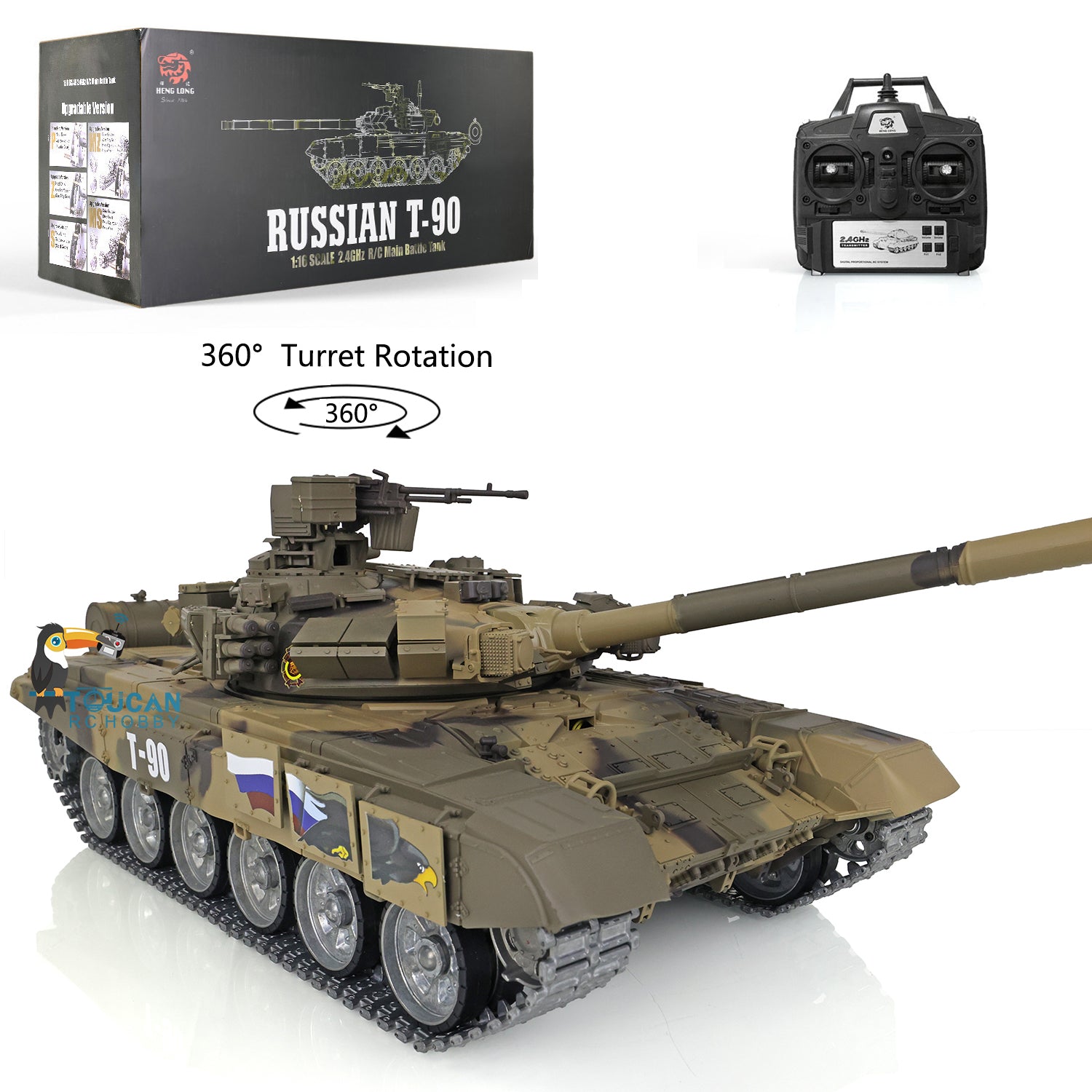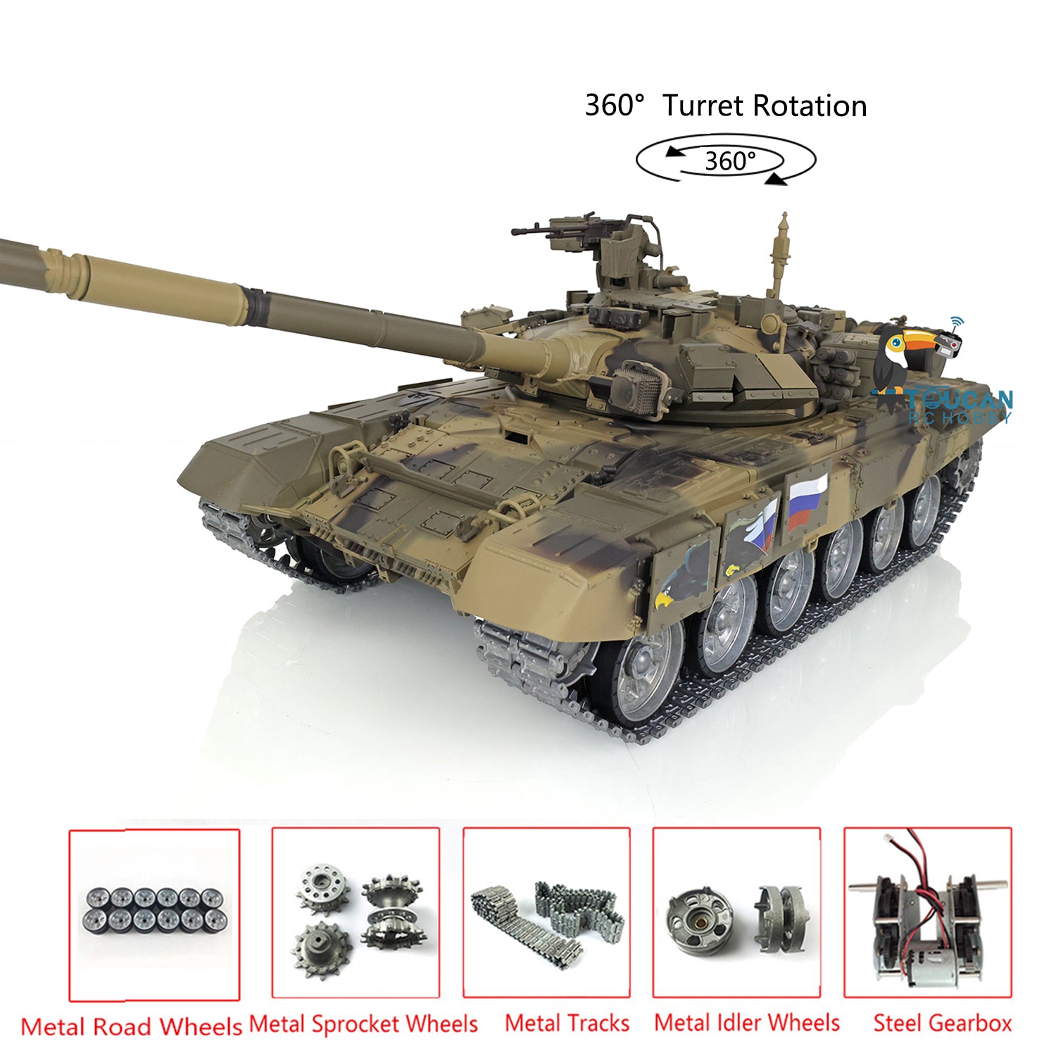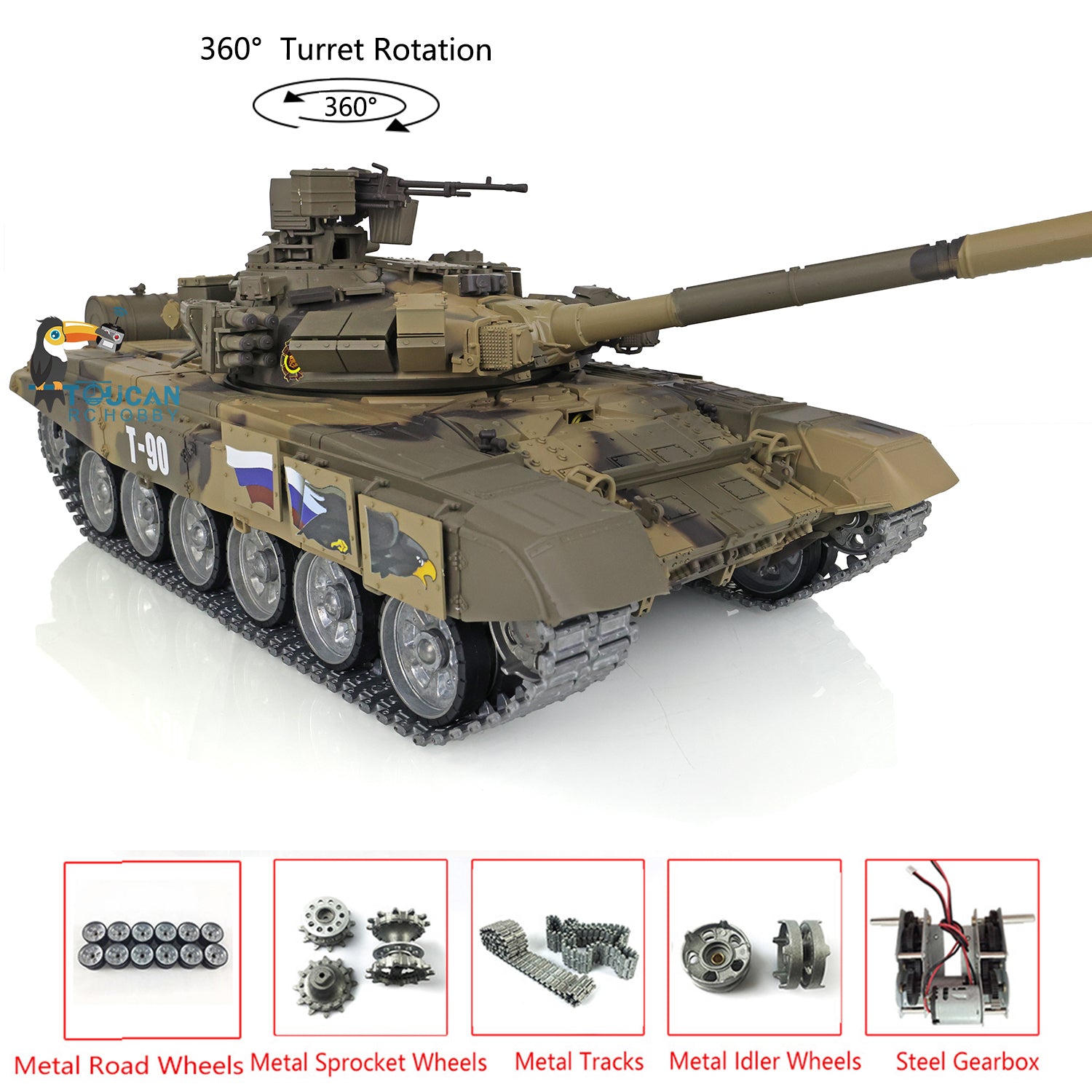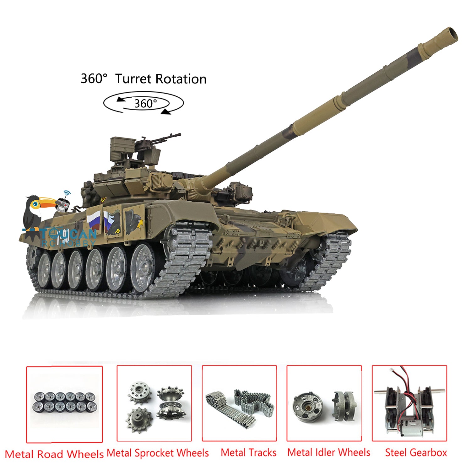 Henglong 7.0 Customized Russian T90 1/16 RC Tank RTR 3938 360 Degrees Turret Metal Tracks Wheels Steel Gearbox Speaker
