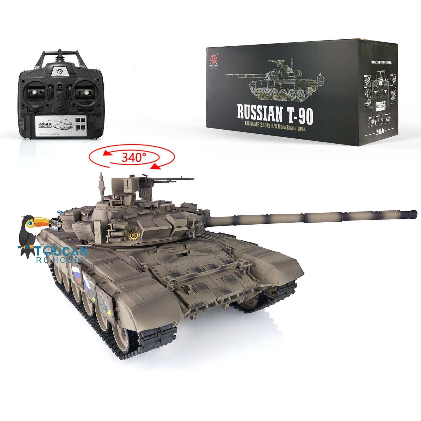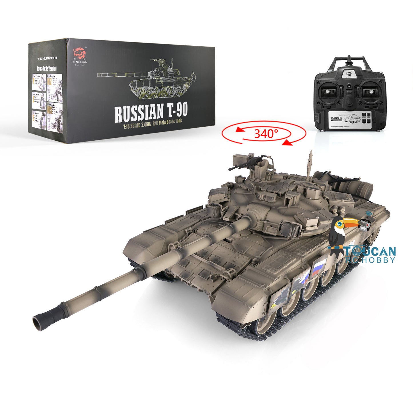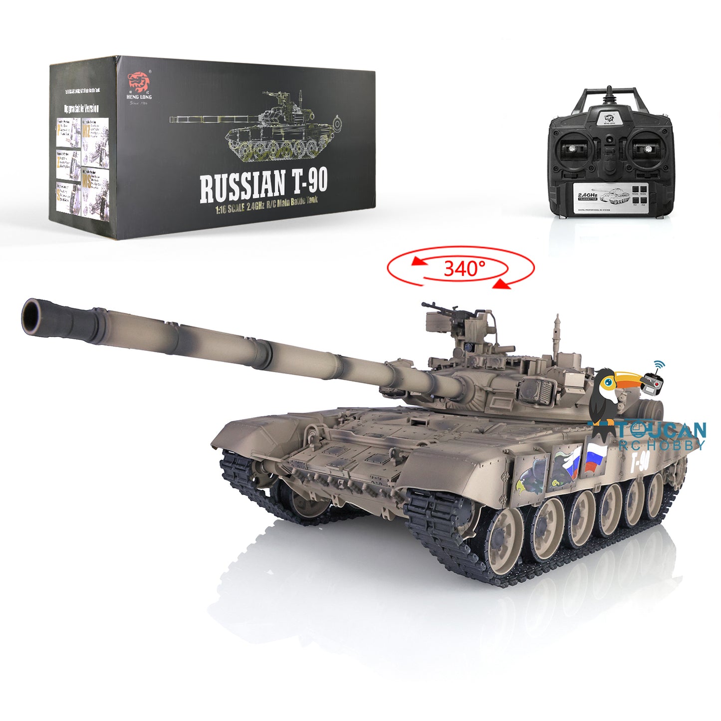 2.4Ghz Henglong 1:16 Scale 7.0 Plastic Edition Russian T90 RTR RC Tank 3938 Model 340 Degree Turret Radio Controller Speaker