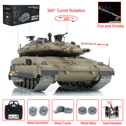 Heng Long RC Tanks Model 1/16 Scale IDF Merkava MK IV With Airsoft Open Fire Smoking 360 Turret Rotary Recoil Barrel