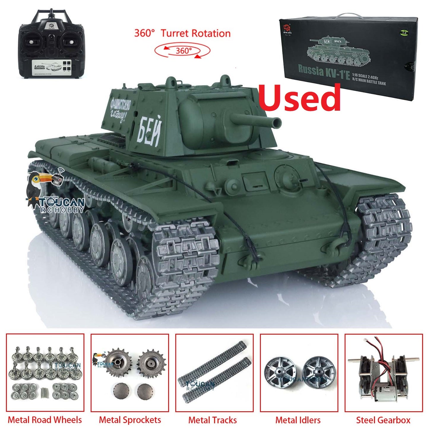 Second Hand US Warehouse Henglong 1/16 7.0 Customized Radio Controlled Soviet KV-1 RTR RC Tank 3878 Metal Tracks Suspension Driving Wheel Gearbox