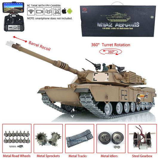 Henglong 1/16 7.0 USA M1A2 Abrams RTR RC Tank Model 3918 Barrel Recoil 360 Degrees Turret Steel Gearbox First Person View
