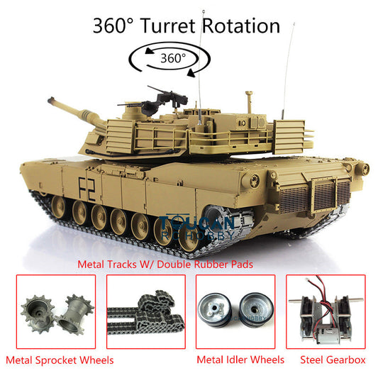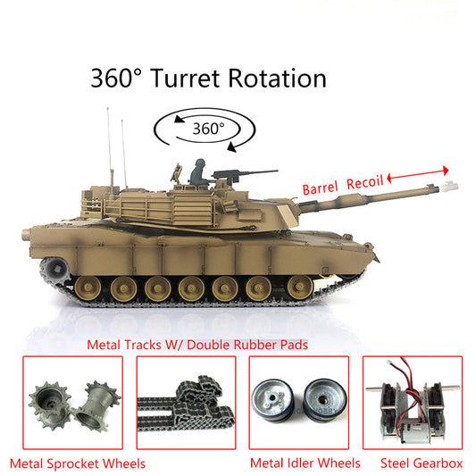1/16 7.0 Henglong Abrams M1A2 RTR RC Tank 3918 With 360 Degrees Turret Barrel Recoil Metal Tracks Wheels Rubber Pads Model