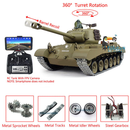 Henglong 1/16 Upgraded Radio Control Tank Model 3838 M26 Pershing w/ FPV 360 Degrees Rotating Turret Metal Tracks Sound Effect