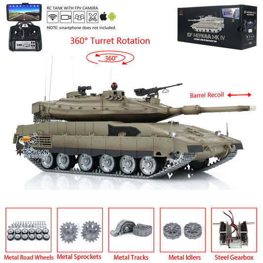Heng Long RC Tanks Model 1/16 Scale IDF Merkava MK IV With Airsoft Open Fire Smoking 360 Turret Rotary Recoil Barrel